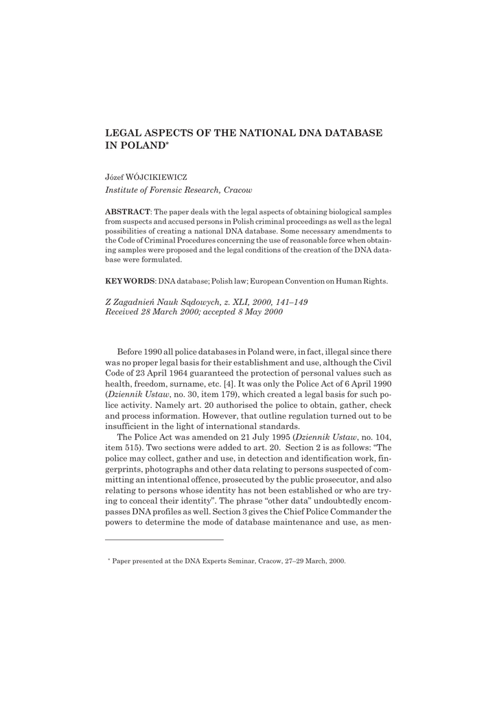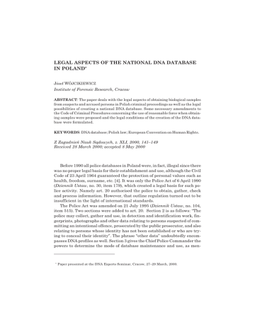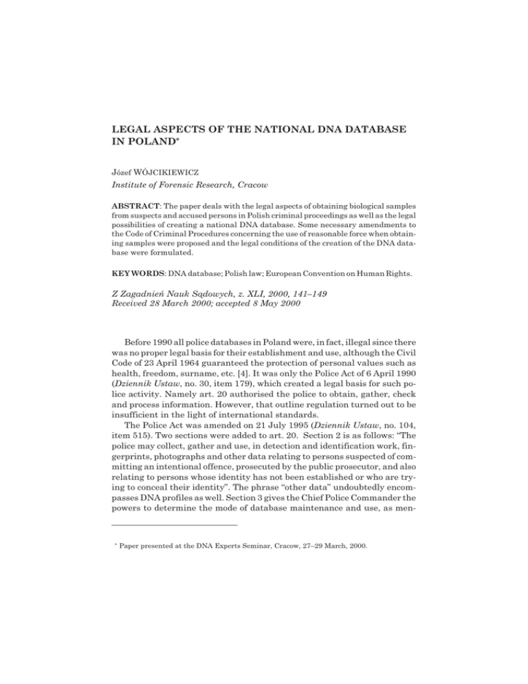 LEGAL ASPECTS OF THE NATIONAL DNA DATABASE IN POLAND*