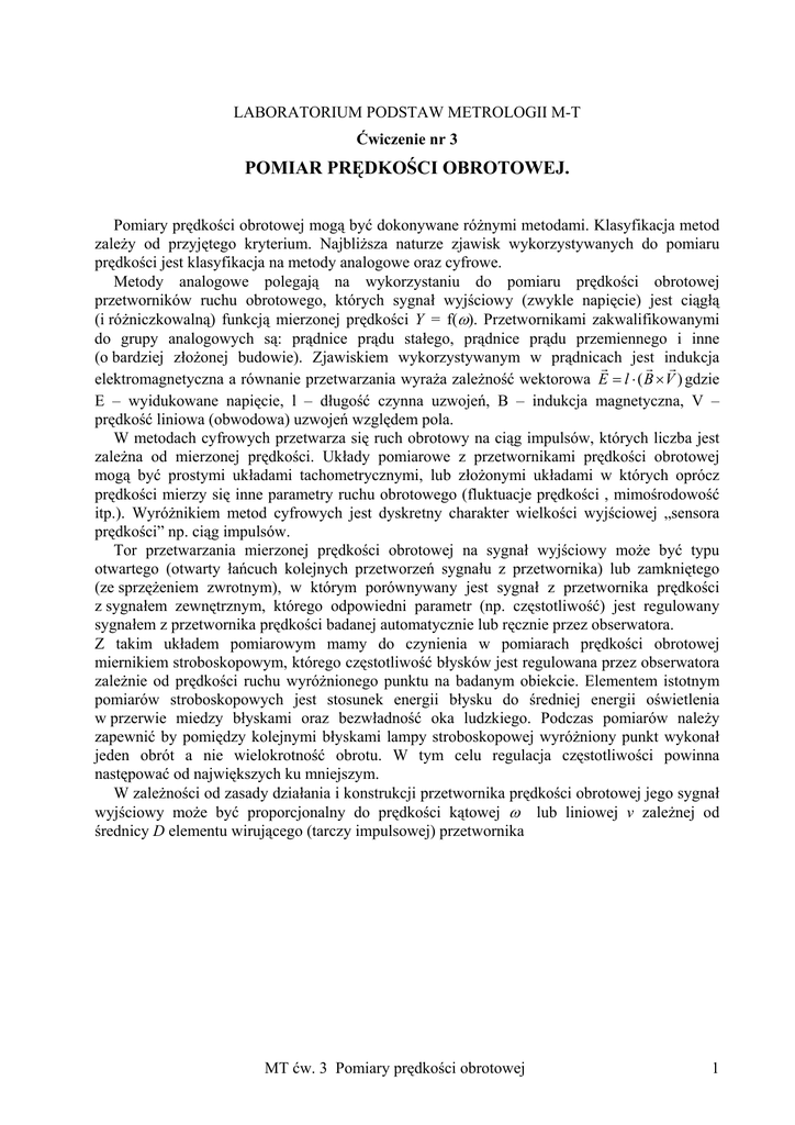 POMIAR PRĘDKOŚCI OBROTOWEJ