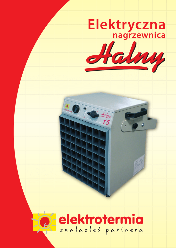 Elektryczna nagrzewnica Halny Halny Elektryczna nagrzewnica Przeznaczona do ogrzewania pomieszczeń i obiektów gospodarczych, warsztatów, sklepów, magazynów. Nagrzewnica tego typu może również służyć do intensywnego osuszania zawilgoconych pomieszczeń. Zamontowanie termostatu zewnętrznego pozwala na ograniczenie kosztów energii. Podobny efekt można uzyskać przez podłączenie zewnętrznego zegara sterującego, dzięki któremu można kontrolować jej włączanie i wyłączanie z 24 godzinnym wyprzedzeniem lub opóźnieniem. Nagrzewnicę można zamontować również na ścianie. Małe wymiary, duża moc, łatwa obsługa oraz wygodna w eksploatacji to dodatkowe atuty. Ponadto 36-cio miesięczna gwarancja i serwis pogwarancyjny zapewniają bezproblemową eksploatację. Budowa nagrzewnicy BEZPIECZNA - posiada znak bezpieczeństwa EKOLOGICZNA - nie powoduje zanieczyszczeń środowiska EFEKTYWNA I EKONOMICZNA - możliwość utrzymania temperatury w pomieszczeniu na stałym poziomie - możliwość montażu na ścianie SOLIDNA - grzałki wykonane w oparciu o technologię i materiały firmy KANTHAL PRZEWÓD Z WTYCZKĄ - urządzenie w standardzie posiada przewód 3mb zakończony wtyczką - Halny 7,5 - 16A - Halny 15 - 32A LAMPKA - sygnalizacja pracy nagrzewnicy Termostaty pokojowe Regulator temperatury ELTE 25 616 - EK 051 HALNY 15 3,75 / 7,5 7,5 / 15 3/N/PE, 400V~ 3/N/PE, 400V~ 6x1250W / 230V~ 12x1250W/230V~ WYMIARY dł. x wys. x szer. cm (z uchwytem) 45 x 48 x 36 44 x 62 x 53 WYMIARY dł. x wys. x szer. cm (bez uchwytu) 45 x 48 x 36 42 x 46 x 41 17 23 MOC ZNAMIONOWA kW ZNAMIONOWE NAPIĘCIE ZASILANIA LICZBA I MOC ELEMENTÓW GRZEJNYCH MASA CAŁKOWITA kg m i e si ę Wyposażenie dodatkowe na indywidualne zamówienie: HALNY 7,5 MODEL 36 cy JA • GW NC ANCJA • AR • GWARA A ul. Mackiewicza 5, 31-214 Kraków, tel. (12) 4157522, 4157523, fax (12) 4154240 http://www.elektrotermia.com.pl, e-mail:[email protected] 4- Regulator mocy oraz prędkości wentylatora 15/7,5 kW lub 7,5/3,75 kW 5- Elementy grzewcze rurkowe 6- Regulacja konta nachylenia ARANC J GW 1- Reset 2- Termostat 5–30°C 3- Lampka sygnalizująca pracę nagrzewnicy STOPIEŃ OCHRONY, ZAPEWNIANY PRZEZ OBUDOWĘ SPOSÓB ZABEZPIECZENIA PRZED PORAŻENIEM PRĄDEM ELEKTRYCZNYM PRZYROST TEMPERATURY POWIETRZA ∆t [°C] IP 24 IP 24 KLASA I KLASA I 25/42 44/90 CENA NETTO zł* 926,23 1276,00 CENA BRUTTO zł* 1140,00 1570,00 Programator tygodniowy ELTE 25 221 - EK 270 *) cena nie zawiera wyposażenia dodatkowego, producent zastrzega sobie prawo do zmiany cen Obudowa nagrzewnicy w kolorze RAL 7032 Za opłatą możliwość wyboru koloru obudowy nagrzewnicy z palety RAL DYSTRYBUTOR
