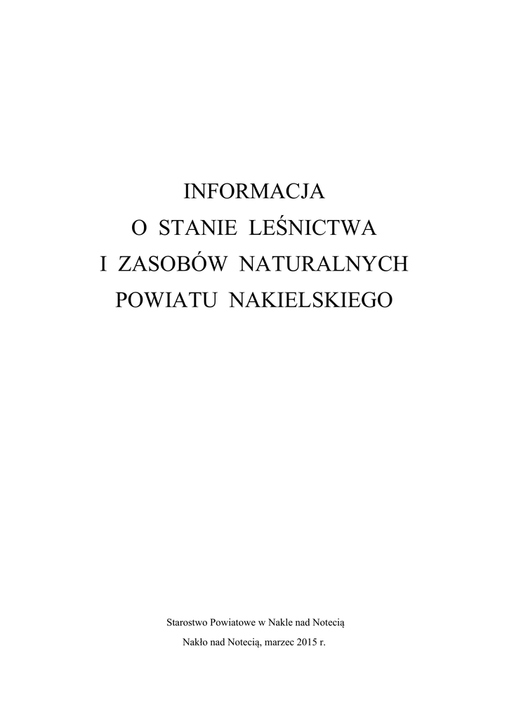 INFORMACJA O STANIE LEŚNICTWA I ZASOBÓW