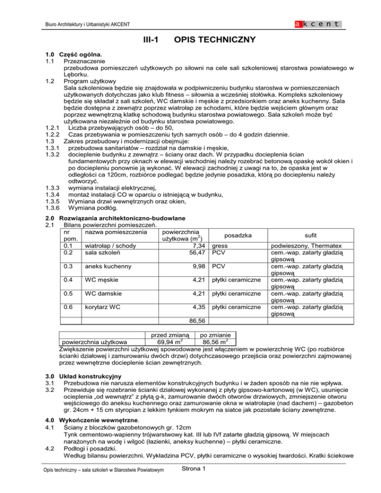 przebudowa pomieszczeĔ uĪytkowych po siłowni na cele sali szkoleniowej starostwa powiatowego w