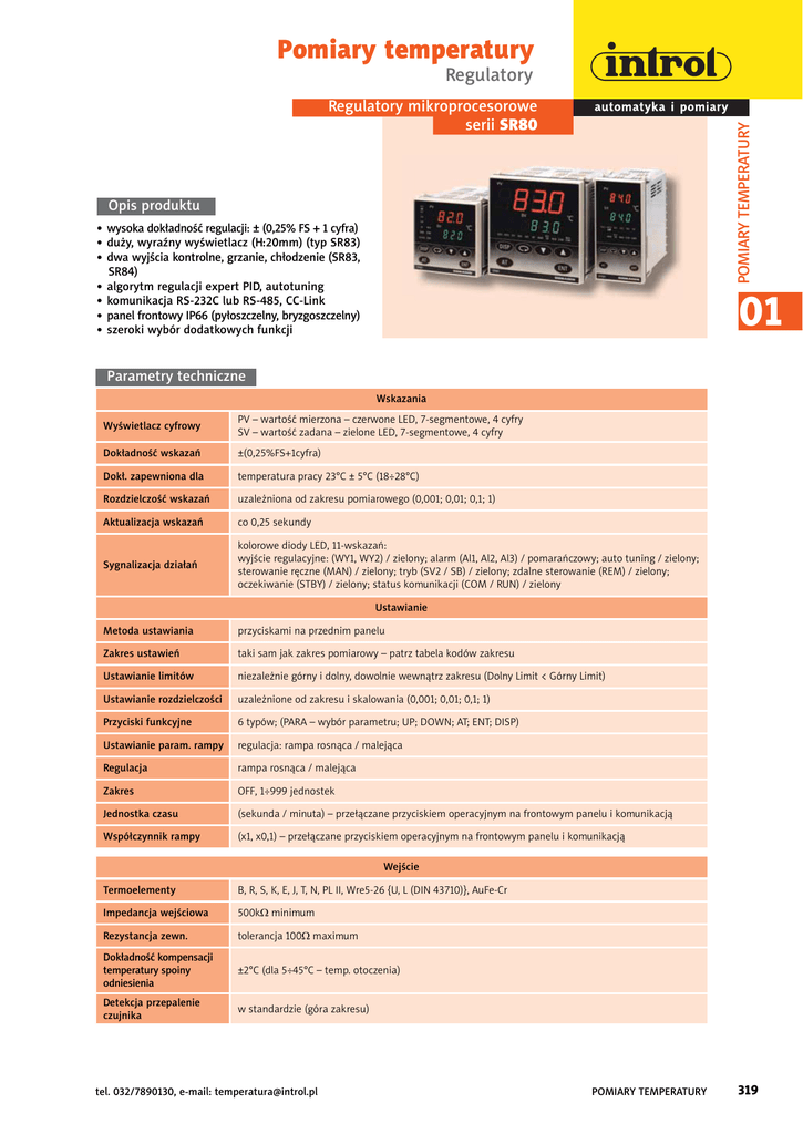 regulator serii SR80 przeznaczony jest do prowadzenia wskazań i regulacji temperaturowych, wilgotnościowych i innych