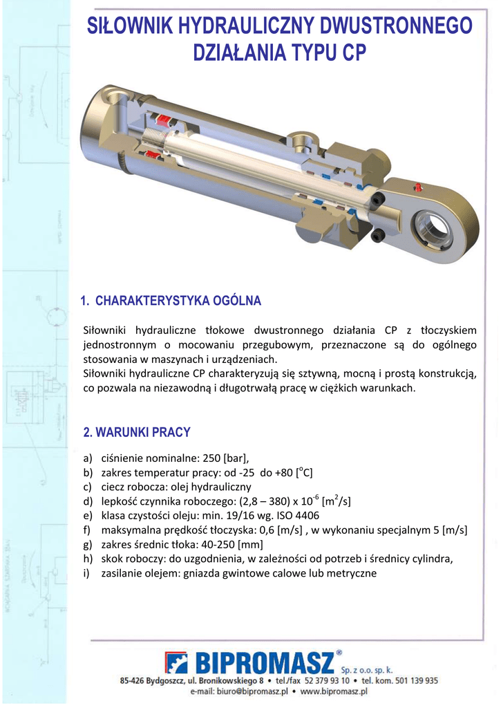 siłownik hydrauliczny dwustronnego działania typu cp 1