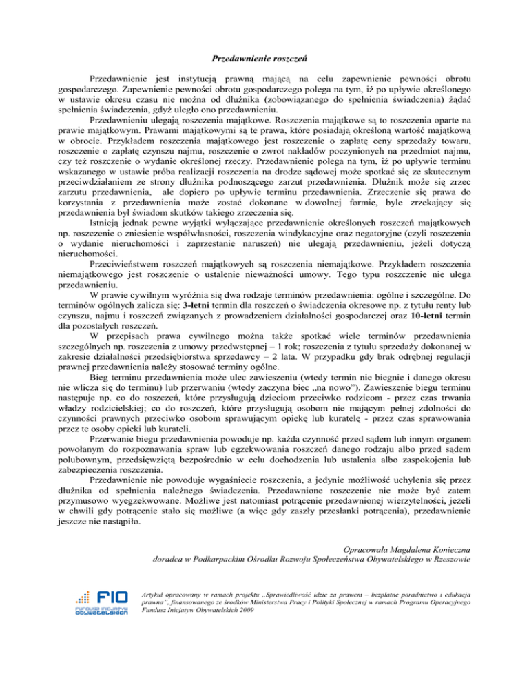 Przedawnienie roszczeń - Podkarpacki Ośrodek Rozwoju