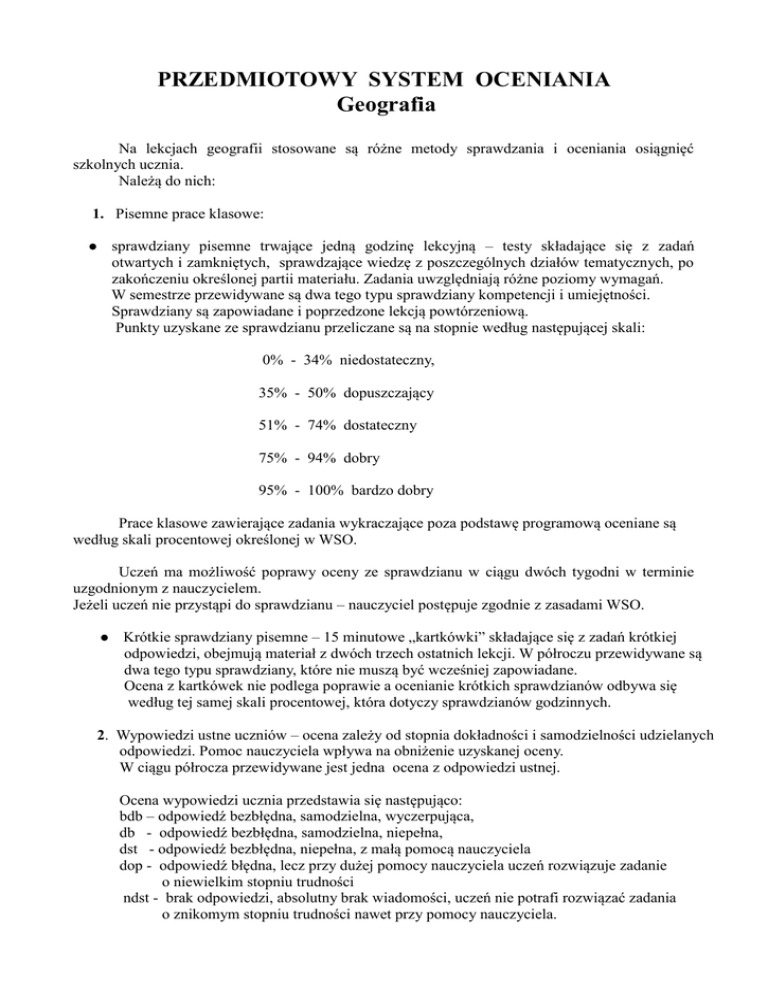 PRZEDMIOTOWY SYSTEM OCENIANIA Geografia