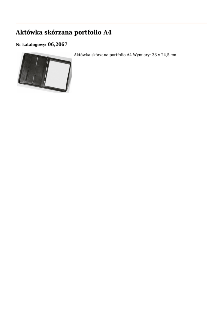 Aktówka skórzana portfolio A4 Nr katalogowy: 06,2067 Aktówka skórzana portfolio A4 Wymiary: 33 x 24,5 cm.