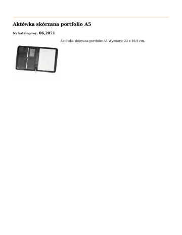Aktówka skórzana portfolio A5 Nr katalogowy: 06,2071 Aktówka skórzana portfolio A5 Wymiary: 22 x 16,5 cm.