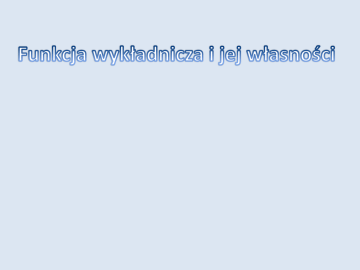Uczeń: zna definicję funkcji wykładniczej; szkicuje wykresy funkcji wykładniczych dla różnych podstaw; potrafi opisać własności funkcji wykładniczej na podstawie jej wykresu; DEFINICJA Funkcją wykładniczą nazywamy funkcję, którą można opisać wzorem 𝒚 = 𝒂𝒙 , gdzie 𝑥 ∈ 𝑅 oraz 𝑎 jest ustaloną liczbą rzeczywistą dodatnią 𝑎 > 0 Wykres funkcji wykładniczej nazywamy krzywą wykładniczą Przykład 1 Narysuj wykres funkcji 𝑦 = 2𝑥 Przykłady funkcji wykładniczej o podstawie 𝑎 > 1 Własności funkcji wykładniczej o podstawie 𝑎 > 1: Dziedzina: R. Zbiór wartości: R+. Monotoniczność: funkcja jest rosnąca. Różnowartościowość: funkcja jest różnowartościowa. Funkcja przyjmuje tylko wartości dodatnie: Miejsca zerowe: funkcja nie ma miejsc zerowych. Parzystość: nie jest. Nieparzystość: nie jest. Przykład 2 Narysuj wykres funkcji 𝑦 = 1 𝑥 2 Przykłady funkcji wykładniczej o podstawie 𝑎 ∈ 0,1 Własności funkcji wykładniczej o podstawie 𝑎 ∈ 0,1 Dziedzina: R. Zbiór wartości: R+. Monotoniczność: funkcja jest malejąca. Różnowartościowość: funkcja jest różnowartościowa. Funkcja przyjmuje tylko wartości dodatnie: Miejsca zerowe: funkcja nie ma miejsc zerowych. Parzystość: nie jest. Nieparzystość: nie jest. Zadanie 1.19 Do wykresu funkcji 𝑓 𝑥 = 𝑎 𝑥 należy punkt 𝐵 = 1 2 , 4 . Napisz wzór funkcji 𝑓. Naszkicuj wykres funkcji f i na jego podstawie ustal, dla jakich argumentów funkcja f przyjmuje wartości mniejsze niż 1 Zadanie 1.20 Uporządkuj w kolejności rosnącej liczby. b) 𝑘 = 1 − 5 7 ;𝑙 = 1 7 3 ;𝑚 = 3 1 7 ;𝑛 = 1 1+ 3 7 ;𝑝 = 1 0 7 Praca domowa Zadania: 1.18, 1.20 a) strona 10