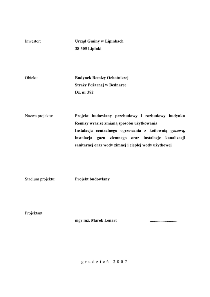 Inwestor: Urząd Gminy w Lipinkach 38