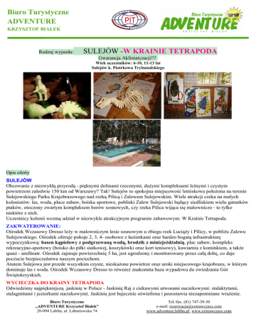 Biuro Turystyczne ADVENTURE SULEJÓW -W KRAINIE