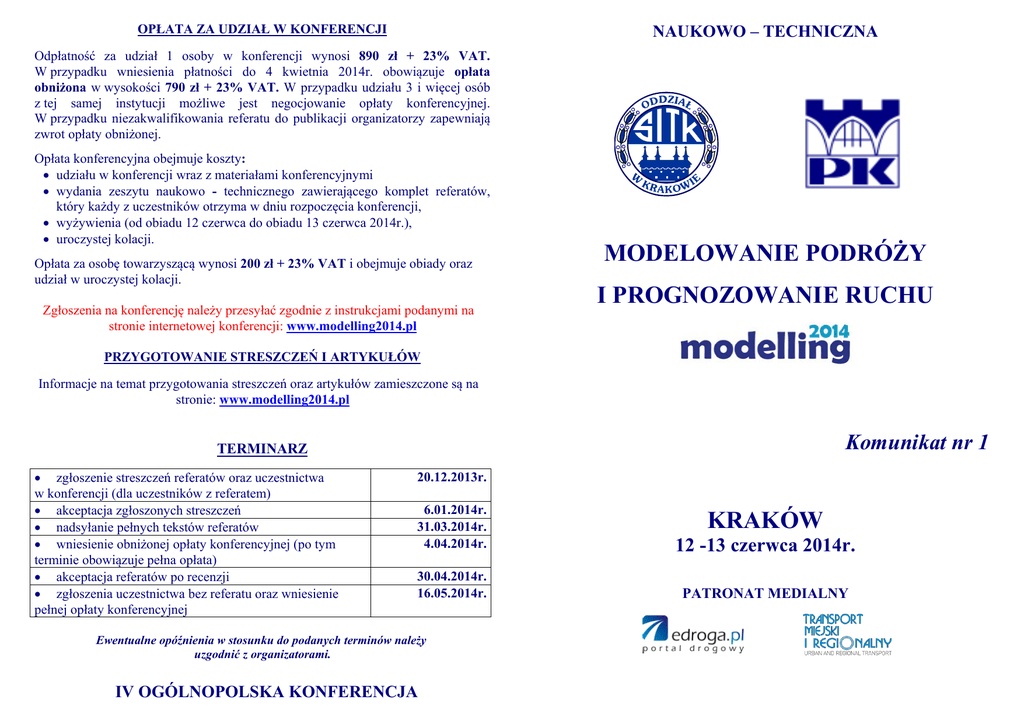 Modelling 2014 - Komunikat nr I