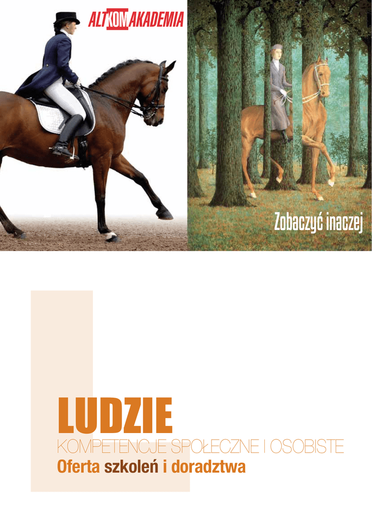 L Zobaczyć inaczej LUDZIE KOMPETENCJE SPOŁECZNE I OSOBISTE Oferta szkoleń i doradztwa JEŻELI zależy Ci, aby: Kluczowymi czynnikami w organizacji były CELOWE ZMIANY, odpowiadające na dynamicznie zmieniające się oczekiwania klientów, Tydzień roboczy menedżerów i zespołów był nie tylko jakościowym działaniem operacyjnym, ale PROJEKTOWANIEM I WDRAŻANIEM INNOWACYJNYCH I SKUTECZNYCH rozwiązań procesowych i technologicznych, Celem rozwoju organizacji było osiąganie WARTOŚCI DODANEJ ponad oczekiwaną jakość i wskaźniki biznesowe przez ŚWIADOMYCH i ZAANGAŻOWANCH menedżerów i zespoły pracowników, ludzie Wartość organizacji stanowiła koncentracja na DOSTARCZANIU NAJWYŻSZEJ JAKOŚCI przy jednoczesnym zapewnieniu WYMIERNYCH KORZYŚCI BIZNESOWYCH interesariuszom, Działania i narzędzia rozwojowe dedykowane menedżerom i zespołom koncentrowały się na wzbudzaniu i prowadzeniu trwałych CELOWYCH ZMIAN W KULTURZE ORGANIZACYJNEJ i JAKOŚCI PRACY, Wyzwaniem i troską organizacji byli ZAANGAŻOWANI I ZMOTYWOWANI LUDZIE, ... to znak, że ALTKOM AKADEMIA jest najlepszym partnerem biznesowym do realizacji powyższych celów, wspierającym i koncentrującym się na kluczowych zasobach w Państwa organizacji - LUDZIACH W PROCESACH. 1 Od ponad 20 lat Grupa Altkom PROJEKTUJE – WDRAŻA – WSPIERA – INTEGRUJE procesy biznesowe i narzędzia rozwojowe w organizacjach. 6 AKADEMIA STRON SUKCESU Zapraszamy do zapoznania się z katalogiem eksperckich projektów rozwojowych w ramach Akademi 6 Stron Sukcesu. Program Akademii złożony jest z 24 szkoleń, zgrupowanych w cztery kluczowe dla organizacji obszary: Klient, Proces, Zespół, Zmiana - widziane z prespektywy pracownika i menedżera. PROCES KLIENT Sukces sprzedaży w 6 krokach 6 filarów obsługi klienta 6 godzina negocjacji 6 pomysłów na networking Budowanie relacji w 6 krokach 6 zasad dobrego zespołu handlowego COWNIK A R P ME ZESPÓŁ 6 dzień menedżera 6 dzień zespołu 6 stopni kreatywnej pracy zespołu Przywództwo 6.0 Ja przeciwko wielu, czyli 6 obszarów motywacji Sekwencja 6 zdarzeń, czyli informacja u celu N E D ŻE 6 twarzy procesu biznesowego 6 mierników budowania biznesowego wizerunku Efektywność 360 Na 6 morzach 6 ról w procesach 6 map procesu R ZMIANA 6 sposobów na opanowanie zmiany Sukces zmiany i 6 zmian w sukcesie 6 tygodni na zmianę Organizacja na 6 6 wyzwań zespołu - lider w zmianie Po szóste: zmień siebie 2 OBSZAR KLIENT – CZYLI JAK SKUTECZNIE WPŁYWAĆ NA PROCESY DECYZYJNE KLIENTÓW WEWNĘTRZNYCH I ZEWNĘTRZNYCH Sukces sprzedaży w 6 krokach Nowi gracze w otoczeniu i wewnątrz organizacji tworzą twardą, handlową rzeczywistość. Proces sprzedaży, czyli wpływ na podjęcie oczekiwanej decyzji w zakresie produktu, rozwiązania, projektu - począwszy od wybrania potencjalnego partnera do stworzenia „źródła aktywnej referencji”, wymaga nie lada profesjonalizmu. Projekt „SUKCES SPRZEDAŻY W 6 KROKACH” wyposaża we wszystkie techniki i postawy handlowe, które będą dogłębnie analizowane i ćwiczone w konkretnych dla każdego uczestnika sytuacjach biznesowych. klient 6 filarów obsługi klienta Rzeczywistość rynkowa cechuje się rosnącą rywalizacją o zdobywanie i utrzymanie klientów. Upodobnianie się produktów i usług do siebie powoduje, że rośnie znaczenie obsługi klienta, jako strategicznego narzędzia budowania przewagi konkurencyjnej. Projekt „6 FILARÓW OBSŁUGI KLIENTA” pozwala kształtować niepowtarzalną kulturę jakości obsługi klienta i wyprzedzania konkurencji. 6 godzina negocjacji Negocjuje każdy, zarówno pracownik z dostawcami, czy dyrektor generalny z kontrahentami i interesariuszami. Aby prowadzić skuteczne negocjacje z łatwością, respektem i taktem, negocjator potrzebuje kontroli nad sobą, znajomości samego siebie oraz chęci i umiejętności poznawania innych – często w bardzo napiętych i nerwowych sytuacjach. Projekt „6 GODZINA NEGOCJACJI” pozwoli na połączenie teoretycznej znajomości taktyk z ich praktycznym zastosowaniem w celu osiągnięcia najlepszych rezultatów. 3 6 pomysłów na networking Projekt „6 POMYSŁÓW NA NETWORKING” dedykujemy tym, którzy mają kontakt z klientem i chcą skutecznie budować relacje biznesowe. Program pomaga przekształcać relacje typu „klient - dostawca” w relacje partnerskie, zarówno w kontaktach z klientem wewnętrznym jak i zewnętrznym. Wykorzystując każdą sytuację, znacząco można zwiększyć szansę na lojalność klienta i skuteczność w osiąganiu oczekiwanych decyzji. Budowanie relacji w 6 krokach Powodzenie w biznesie często zależy od trwałych i profesjonalnych relacji. O sukcesie decydują specyficzne kompetencje w komunikacji i wiedza na temat budowania relacji. Projekt „BUDOWANIE RELACJI W 6 KROKACH” dedykujemy tym, którzy poszukują efektywności zarządzania silną grupą osobistych i biznesowych interesariuszy. 6 zasad dobrego zespołu handlowego Sukces firmy sprzedającej swoje produkty w postaci usług, technologii czy wyrobów zależy od ich jakości, ceny, funkcjonalności i trwałości. Mimo wszystko, jednak to ludzie, a więc sprzedaż, są kluczowym elementem decydującym o sukcesie. Sposób działania staje się najważniejszym elementem przesądzającym na konkurencyjnym rynku. Projekt „6 ZASAD DOBREGO ZESPOŁU HANDLOWEGO” dedykujemy działom sprzedaży, aby pokazać jak stworzyć optymalne warunki funkcjonowania zespołu, a także jak dawać przykład i wykazywać zaangażowanie w sprzedaż i negocjacje. OBSZAR ZESPÓŁ – CZYLI JAK SPRAWNIE BUDOWAĆ I ANGAŻOWAĆ ZESPOŁY, ABY OSIĄGAŁY CELE ORAZ JAK SKUTECZNIE WŁĄCZAĆ SIĘ W ŻYCIE ZESPOŁU Przywództwo 6.0 Współczesny rynek stawia przed menedżerami coraz większe wyzwania. Chociaż klasyczne zadania menedżerskie pozostają nadal aktualne, coraz częściej oczekuje się od nich zdolności przywódczych, elastyczności i umiejętności dostosowania stylu przewodzenia do 