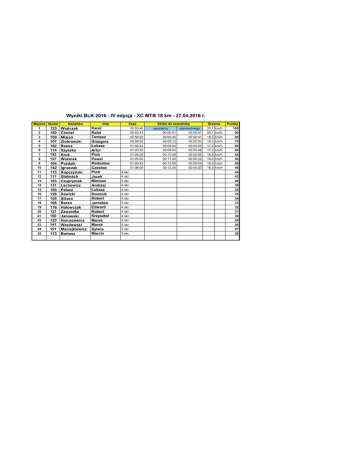 Wyniki BLK 2016 - IV edycja - XC MTB 18 km