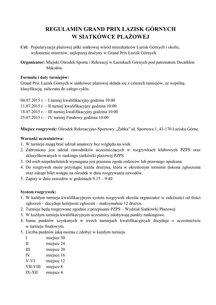 REGULAMIN - GRAND PRIX w siatkówce plażowej