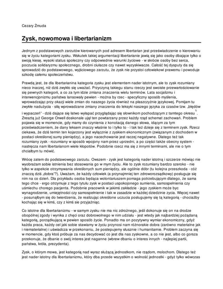 Zysk, nowomowa i libertarianizm