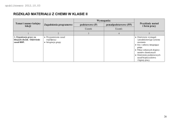 ROZKŁAD MATERIAŁU Z CHEMII W KLASIE II