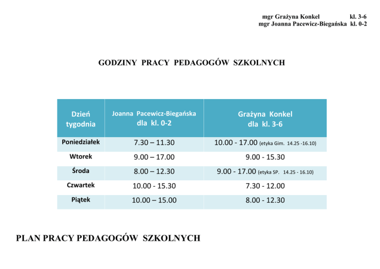 PLAN PRACY PEDAGOGÓW SZKOLNYCH