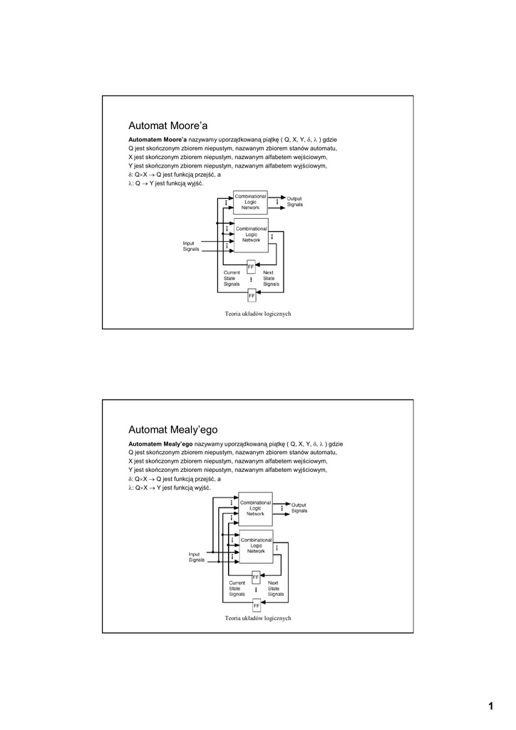 Niech A1=(Q1, X1, Y1, 1, 1 ) będzie automatem Moore’a.