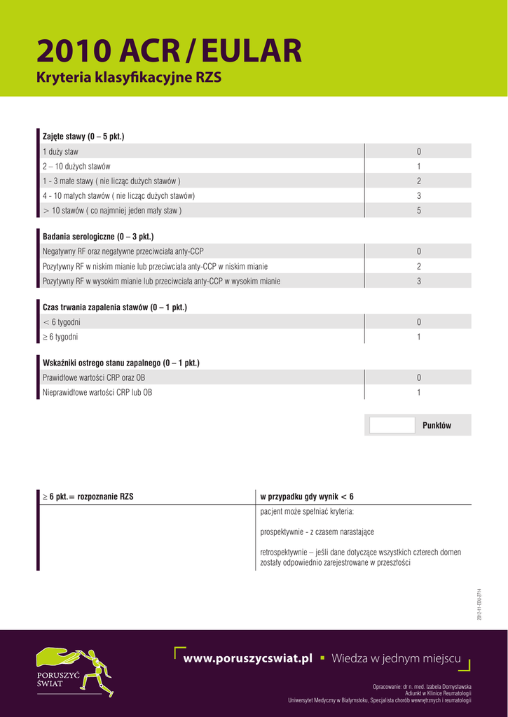 2010 ACR / EULAR Kryteria klasyfikacyjne RZS