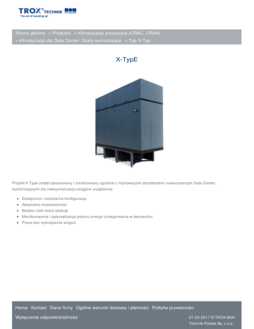 Strona główna > Produkty > Klimatyzacja precyzyjna (CRAC, CRAH) > Klimatyzacja dla Data Center: Szafy wolnostojące > Typ X-Typ X-TypE Projekt X Type został opracowany i zrealizowany zgodnie z najnowszymi standardami nowoczesnych Data Center, wyróżniającymi się maksymalizacją osiągów urządzenia: Elastyczna i modularna konfiguracja Absolutna niezawodność Bardzo niski koszt obsługi Monitorowanie i optymalizacja poboru energii zintegrowana w sterowniku Praca bez wykraplania wilgoci Home Kontakt Dane firmy Ogólne warunki dostawy i płatności Polityka prywatności Wyłączenie odpowiedzialności 07-03-2017 © TROX BSH Technik Polska Sp. z o.o. Strona główna > Produkty > Klimatyzacja precyzyjna (CRAC, CRAH) > Klimatyzacja dla Data Center: Szafy wolnostojące > Typ X-Typ GŁÓWNE KOMPONENTY Urządzenia zaprojektowane z wykorzystaniem analiz CFD (Computational Fluid Dynamics) Współczynnik SHR = 1; Optimization of the air circuit; Optimization of the hydraulic circuit; New plug fans with EC electric motors and composite impeller of the latest generation, which guarantees a reduction of power consumption (ERP 2015 certification); New fans electric motor that do not require maintenance; Improvement of the control software, developed by RC Group, with advanced control logic; Bag filters of large surface that reduce replacement operations to once a year;; Panels fully removable to facilitate the operations of extraordinary maintenance; Supply fans with AC electric motors for fixed air flow (on request). “Software Advanced": intelligent NET for IT Cooling, that maximizes the energy saving in LOAD SHARING (on request). TROX BSH Technik Polska Sp. z o.o. Kontakt online Formularz kontaktowy Kontakt TROX BSH Stara Iwiczna Zgłoszenie usterki Zapytanie ofertowe - szafy Telefon: +48 22 73718 58 Fax: +48 22 737 18 59 Tel. Komórkowy: +48 662 129 415 Kontakt TROX BSH Technik Polska Sp. z o.o. ul. Kolejowa 13, Stara Iwiczna 05-500 Piaseczno telefon +48 22 737 18 58 fax +48 22 737 18 59 e-mail: [email protected] Home Kontakt Dane firmy Ogólne warunki dostawy i płatności Polityka prywatności Wyłączenie odpowiedzialności 07-03-2017 © TROX BSH Technik Polska Sp. z o.o.