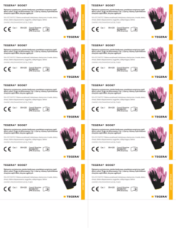 TEGERA® 90067 TEGERA® 90067 Rękawica syntetyczna, pianka lateksowa, powlekana wnętrzna część dłoni, nylon, 13 gg, strukturowane, Cat. I, czarny, różowy, hydrofobowa chwytna część dłoni, do prac ogólnych Rękawica syntetyczna, pianka lateksowa, powlekana wnętrzna część dłoni, nylon, 13 gg, strukturowane, Cat. I, czarny, różowy, hydrofobowa chwytna część dłoni, do prac ogólnych WŁAŚCIWOŚCI Dobra wrażliwość dotykowa, elastyczne, trwałe, dobry chwyt, dobre dopasowanie, wygodne, oddychające, lekkie WŁAŚCIWOŚCI Dobra wrażliwość dotykowa, elastyczne, trwałe, dobry chwyt, dobre dopasowanie, wygodne, oddychające, lekkie ZAKRES ROZMIARÓW (UE) 6, 7, 8, 9 ZAKRES ROZMIARÓW (UE) 6, 7, 8, 9 Cat. I EN 420 Cat. I EN 420 TEGERA® 90067 TEGERA® 90067 Rękawica syntetyczna, pianka lateksowa, powlekana wnętrzna część dłoni, nylon, 13 gg, strukturowane, Cat. I, czarny, różowy, hydrofobowa chwytna część dłoni, do prac ogólnych Rękawica syntetyczna, pianka lateksowa, powlekana wnętrzna część dłoni, nylon, 13 gg, strukturowane, Cat. I, czarny, różowy, hydrofobowa chwytna część dłoni, do prac ogólnych WŁAŚCIWOŚCI Dobra wrażliwość dotykowa, elastyczne, trwałe, dobry chwyt, dobre dopasowanie, wygodne, oddychające, lekkie WŁAŚCIWOŚCI Dobra wrażliwość dotykowa, elastyczne, trwałe, dobry chwyt, dobre dopasowanie, wygodne, oddychające, lekkie ZAKRES ROZMIARÓW (UE) 6, 7, 8, 9 ZAKRES ROZMIARÓW (UE) 6, 7, 8, 9 Cat. I EN 420 Cat. I EN 420 TEGERA® 90067 TEGERA® 90067 Rękawica syntetyczna, pianka lateksowa, powlekana wnętrzna część dłoni, nylon, 13 gg, strukturowane, Cat. I, czarny, różowy, hydrofobowa chwytna część dłoni, do prac ogólnych Rękawica syntetyczna, pianka lateksowa, powlekana wnętrzna część dłoni, nylon, 13 gg, strukturowane, Cat. I, czarny, różowy, hydrofobowa chwytna część dłoni, do prac ogólnych WŁAŚCIWOŚCI Dobra wrażliwość dotykowa, elastyczne, trwałe, dobry chwyt, dobre dopasowanie, wygodne, oddychające, lekkie WŁAŚCIWOŚCI Dobra wrażliwość dotykowa, elastyczne, trwałe, dobry chwyt, dobre dopasowanie, wygodne, oddychające, lekkie ZAKRES ROZMIARÓW (UE) 6, 7, 8, 9 ZAKRES ROZMIARÓW (UE) 6, 7, 8, 9 Cat. I EN 420 Cat. I EN 420 TEGERA® 90067 TEGERA® 90067 Rękawica syntetyczna, pianka lateksowa, powlekana wnętrzna część dłoni, nylon, 13 gg, strukturowane, Cat. I, czarny, różowy, hydrofobowa chwytna część dłoni, do prac ogólnych Rękawica syntetyczna, pianka lateksowa, powlekana wnętrzna część dłoni, nylon, 13 gg, strukturowane, Cat. I, czarny, różowy, hydrofobowa chwytna część dłoni, do prac ogólnych WŁAŚCIWOŚCI Dobra wrażliwość dotykowa, elastyczne, trwałe, dobry chwyt, dobre dopasowanie, wygodne, oddychające, lekkie WŁAŚCIWOŚCI Dobra wrażliwość dotykowa, elastyczne, trwałe, dobry chwyt, dobre dopasowanie, wygodne, oddychające, lekkie ZAKRES ROZMIARÓW (UE) 6, 7, 8, 9 ZAKRES ROZMIARÓW (UE) 6, 7, 8, 9 Cat. I EN 420 Cat. I EN 420 TEGERA® 90067 TEGERA® 90067 Rękawica syntetyczna, pianka lateksowa, powlekana wnętrzna część dłoni, nylon, 13 gg, strukturowane, Cat. I, czarny, różowy, hydrofobowa chwytna część dłoni, do prac ogólnych Rękawica syntetyczna, pianka lateksowa, powlekana wnętrzna część dłoni, nylon, 13 gg, strukturowane, Cat. I, czarny, różowy, hydrofobowa chwytna część dłoni, do prac ogólnych WŁAŚCIWOŚCI Dobra wrażliwość dotykowa, elastyczne, trwałe, dobry chwyt, dobre dopasowanie, wygodne, oddychające, lekkie WŁAŚCIWOŚCI Dobra wrażliwość dotykowa, elastyczne, trwałe, dobry chwyt, dobre dopasowanie, wygodne, oddychające, lekkie ZAKRES ROZMIARÓW (UE) 6, 7, 8, 9 ZAKRES ROZMIARÓW (UE) 6, 7, 8, 9 Cat. I EN 420 Cat. I EN 420