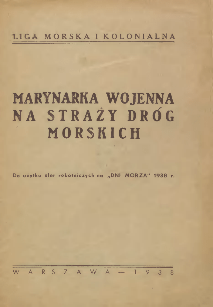 L1GA MORSKA KOLONIALNA I MARYNARKA NA WOJENNA DRÓG STRAty MORSKICH Do u?ytku sfer robotniczych na "DNI WARSZAWA-1938 MORZA" 1938 r. l - Zak?. Graf. 1:,5b "D?WIGNIA", Warszawa. Widok 24, tel. 665-39. Poczucie konieczno?ci posiadania przez Polsk? do wojennej bardziej mas naj szerszych spo?ecze?stwa. Du?ymi sukcesami mo?e si? poszczyci? akcja propagandoi Kolonialnej, kilku lat wa która od Morskiej Ligi has?a bezrozbudowy floty prowadzi g?osi wojennej, na interesownie Fundusz zbiórk? Obrony Morskiej cel na ten i przekazuje sk?adek .?2,5% wszystkich nie cz?onkowskich. luTym mniej sporo jest jeszcze albo do dzi, którzy si? wr?cz odnosz? niech?tnie tej albo te? nawet sk?adakcji, je?li czy daj? tak?, inn? to bez w przekonania, k?, to jednak czyni? gdy? grun.nie cie o celowo?ci i s?uszrzeczy s? prze?wiadczeni no?ci hase?. g?oszonych przez Lig? z zada? Jednym g?ównych marynarki wojennej obrona handlu Silna flota jest morskiego. wojennato na r?kojmia jedyna bezpiecze?stwa pracy naszej to obro?ca i stra? morzu, najlepszy portów czujna morskich. Bez ca?odróg silnej marynarki wojennej in kszta?t teresów i zamorskich morskich naszych na zosta? chwili w ka?dej szwank, móg?by nara?ony z takim trudem to wszystko, co utraci? mogliby?my silnej floty przenika coraz ?wiadomo?ci 3 i stworzyli?my znojem na ?e wybrze?u, tylko dalszy na silna i morzu za flota wojenna rowszechstronny a razie w morskiej, potrzeby pracy naszej to coraz intereskutecznie obroni? bardziej rozleg?e z?orzami. i N morzu na Polski o, dobrze, po-sy to sobie obywatel, wszystko praprzeci?tny my?li mo?e to mnie ?e na stra?y có? Ale wda. obchodzi?, sta? silna interesów armatorów, czy kupca b?dzie w Jaki? interes ?wiata flota tym jest prr.wojenna? ka?demu robotnikowi Przecie? czy pracownikocy? na mia? mo?liwi chyba zale?y tym, bardziej aby nie du?e wie zarobki, aby go wyzyskiwano, aby swoim byt i utrzymanie móg? zapewni? najbli?szym, swe dawa? ni? sk?adki na rozbudochody, uszczupla? i zapewni? w ten dowojennej floty dow? sposób z handlu którzy np. tym, brobyt morskiego czerpi? nie siebie dla Czy? zyski. jest rzecz? s?uszniejsz?, jest zwój zabezpieczy? stanie w - dba? do o jednak sprawa rozwa?y? Jest To inych? dobrobytu pierwszy interesy, klasowe w?asne rzut my faktem, Jest oceanami. oka j? ni? przyczyni? wydaje rozumowanie bardzo logiczne. zupe?nie wygl?da bardziej W gruncie inaczej. si? si? na rzeczy Spróbuj- wszechstronnie. ?e przeci?tna powszechnie znan?, i zarobków, dochód poziom ?ycia wysoko?? spo?eczny, znacznie w Polsce ani?eli w szeni?szy, jest ca?ym zachodnio pa?stw europejskich. regu Zastanówmy ta zamo?no?? sk?d si? zrodzi?a si? teraz, we. wszystna niemal kich zachodzie? Przecie? niektóre krajach z -tych naturalpa?stw mniej posiadaj? bogactw rzecz? - 4 nych ni? dem obszaru niektóre Polska, i cowito?? pod robotnika stu przys?owiowa? zamo?no?? powied?: wszechstronnemu dzi?ki Po pejskie podró?y l?dów u Ameryki, odkryci rozpocz??y organizacj? do badawczych i zamorskich nera?ów, p?odów te zacz??y Pa?stwa swej handel, W ten krajów. pa?stwa i wielkie krain wzgl?mniejsze pod a przecie? ludno?ci, prapopropolskiego jest czy ch?opa odNa to jest prosta pytanie te pa?stwa ugruntowa?y sw? morza. wyzyskaniu s? wzgl?dem ludno?ci, zachodnio narody - euro- zdobywczych nieznanych dot?d zacz??y powstawa? z podbitych czerpi?ce miw postaci bogactwa skór owoców, tkanin, itp. wypraw nowych, sposób kolonialne, olbrzymie rolnych, lokowa? jednocze?nie osi?gaj?c podwójne w koloniach cz??? ca?y uj??y sprzedazyski: drogo wano za oceanami z za towary sprowadzane Europy, bezcen Na kolonialne. wywo?ono produkty stamt?d niepocz?tek rol? t? spe?nia?y okr?ty uzbrojone, gdy? statki handlowe ?atwo sta? uzbrojone mog?y si? ?ute? tupem korsarzy, czy wojowniczych szczepów z z bylczych. Dopiero czasu, biegiem chwil? gruntowania w koloniach swych wp?ywów przez poszczestatki handlowe gólne pa?stwa zacz??y spe?nia? a na w?a?ciw? strasw? fol?, okr?ty wojenne stan??y i ?y rynków zbytu nad cadróg morskich, czuwaj?c ?okszta?tem interesów i gospodarczych politycznych swego kraju. W taki a nie swe inny sposób ugruntowa? wp?ywe niemal wy wszystkich ?wiata cz??ciach wyspiar- a w swe r?ce - 5 naród ski dzi? kolonialnego dzi?ki sposób budowa?y analogiczny lonialnym, wp?yw swój takie towej A jak podstawy tworz?c angielski, mocarstwa na morzu SWO] najwi?kszego ziemskiej. i posiad?o?ciom materialny, dobrobyt kuli W ko- znaczenie na arenie ?wiapolityczne Holandia. jak Francja, pa?stwa W?ochy, w to by?o Polsce? u nie Otó? nas dawnej na nam doceniano korzy?ci, ogó? tych jakie mog?o Zaabsorbowani na kreda? morze. ci?g?ymi wojnami do nie chciesach wschodnich, maj?c handlu, niech?? ani budowa? statków hanokr?tów wojennych, li?my Nasze drzewo i inne zbo?e, towary sz?y dlowych. ale do obcych z Polski krajów, wywozili je inni, pod na bander?, w?asnych statkach, w?asn? czerpi?c st?d nam a dawano marne korzy?ci, olbrzymie jedynie i? dawna mia?a Mimo, okruchy. Rzeczypospolita pokm 1000 nad Polska w?a?ciwie granicy morskiej, morskim nie nie nigdy by?a, pa?stwem gdy? posiai da?a z wolw?asnej floty wojennej handlowej, gdy? do morza dla siebie dost?pu ?adnych nego korzy?ci i umia?a i nie Skutki tych wiekowych nie da?y d?ugo wzrasta?y, uzale?niaj?c nie czerpa? skich doko?a nas morzu-my, wrogów, i bieda na kurczyli?my i ziemiach rozbiór epilog: lat 6 n?dza trwaj?ca stawa?y polskich. Polski niewola chcia?a. zaniedba? siebie na pot??nia?y, si? si?, si? A? i bogaci?y bardziej coraz s?abn?c coraz coraz to wreszcie d?uga, polityczna. spraw Inne czeka?. cz?stszym nadszed? sto dwadz mor- pa?stwa dzi?ki od obcych bardziej, go?ciem tragiczny si? to lescia kilka w Polsce Niepodleg?ej VI! skrawek niewielki zaledwie portu w?asnego radykalnej stosunek - - mimo, w?asnego do morza i? pozosta? wybrze?a, uleg? nam bez odrazu z czynów pierwszych Jednym lidniach w Józefa pami?tnych który Pi?sudskiego, na swe barki 1918 roku odpowiewzi?? stopadowych o utwoza dzialno?? Polski, by?