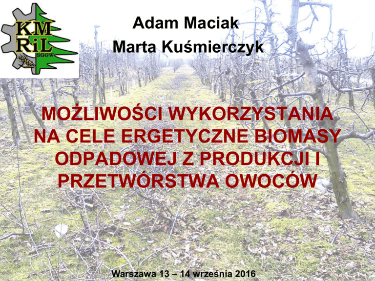 Adam Maciak Marta Kuśmierczyk MOŻLIWOŚCI WYKORZYSTANIA NA CELE ERGETYCZNE BIOMASY ODPADOWEJ Z PRODUKCJI I PRZETWÓRSTWA OWOCÓW Warszawa 13 – 14 września 2016 Sady to plantacje drzew owocowych, krzewów owocowych i upraw jagodowych Łączna powierzchnia sadów w Polsce wynosi: 349 939 ha (2,4 % użytków rolnych ogółem) Liczba gospodarstw sadowniczych wynosi: 155 995 szt. (11,1 % gospodarstw ogółem) Struktura liczby gospodarstw w grupach obszarowych powierzchni sadów 2,4% 0,5% 0,14% 6,9% < 1 ha 1,01-4,99 5,0-9,99 10,00-19,99 20,00-49,99 >50 22,8% 67,3% Opracowano na podstawie danych GUS Struktura powierzchni upraw w grupach obszarowych powierzchni sadów 6,6% 7,6% 12,8% 17,3% 30% < 1 ha 1,01-4,99 5,0-9,99 10,00-19,99 20,00-49,99 >50 25,8% Opracowano na podstawie danych GUS Udział powierzchni uprawy drzew owocowych, krzewów owocowych (łącznie z malinami) oraz szkółek drzew i krzewów owocowych w ogólnej powierzchni sadów 1% 19,5% drzewa owocowe krzewy owocowe szkółki drzew i krzewów 79,5% Opracowano na podstawie danych GUS Struktura powierzchni upraw drzew owocowych Grusze 2,9% Orzechy Brzoskwinie włoskie 1,6% 0,7% Morele 0,3% Czereśnie 4,4% Śliwy 6,3% Wiśnie 12,8% Jabłonie 71% Opracowano na podstawie danych GUS Rozmieszczenie upraw jabłoni Województwo: Mazowieckie – 42,4 % (powierzchni sadów zajętej pod uprawę jabłoni w Polsce); Łódzkie – 12,2 %; Lubelskie – 11,1 %; Świętokrzyskie – 10,6 % W sumie na terenie tych czterech województw znajduje się 76,3% sadów jabłoniowych uprawianych w Polsce. Na pozostałe 12 województw przypada tylko 23,7 %. Najważniejsze rejony upraw sadowniczych 1. Region mazowiecki - w rejonach Grójec - Góra Kalwaria oraz Łowicz - Skierniewice dominuje uprawa jabłoni, między Płońskiem a Płockiem uprawia się maliny, a w okolicy Włocławka porzeczki i agrest. 2. Region lubelski ciągnie się od Sandomierza do Puław. Uprawia się tam jabłonie, brzoskwinie, morele, czereśnie i orzechy włoskie. 3. Region południowy - głównie Kotlina Nowosądecka i Oświęcimska - jabłonie, śliwy. Źródła biomasy z produkcji sadowniczej • Gałęzie z corocznych cięć sanitarnych (prześwietlania, formowania koron); • Gałęzie, pnie i karpy z wymiany sadów; • Wytłoki; • Liście???. Możliwości pozyskania biomasy z sadów na przykładzie Powiatu Grójeckiego Corocznie w Powiecie Grójeckim z cięć sanitarnych i wymiany sadów można pozyskać 138 774 m3 drewna [Maciak A., Lipińska G.: Możliwości i koszty pozyskania drewna z sadów, Technika Rolnicza, Ogrodnicza, Leśna, nr 2/2006] Dla porównania w Nadleśnictwie Grójec średni roczny całkowity etat cięć to 95 933 m ( 53 289 użytki rębne, 40 644 użytki przedrębne) [Plan urządzania lasu dla Nadleśnictwa Grójec na lata 2014 – 2023] • Ciepło spalania i wartości opałowe biomasy z produkcji i przetwórstwa owoców Biomasa poddana badaniom ciepła spalania i wartości opałowej Jabłoń Wiśnia drewno kora z pnia gałęzie kora z gałęzi liście z jabłek - 0%; 6,4%; 11,5%; 19,4%. z aronii - 0%; 5,7%; 10,7%; 19,4% drewno gałęzie kora śliwa czereśnia grusza Wytłoki: drewno Wilgotność początkowa wytłoków wynosiła: Wytłoki z jabłek – 280,6 % Wytłoki z aronii – 47,1 % Wykorzystane urządzenia Wagosuszarka RADWAG WPS 210 S Kalorymetr KL-10 Suszarka laboratoryjna SLW 115 TOP+ Młynek frezowy WYNIKI 14000 wytłoki aronia wytłoki jabłka grusza drewno czereśnia drewno śliwa drewno wiśnia kora wiśnia gałęzie wiśnia drewno jabłoń liście jabłoń kora z gałęzi jabłoń gałęzie jabłoń kora z pnia jabłoń drewno Ciepło spalania [kJ/kg] Ciepło spalania badanych rodzajów biomasy 26000 24000 22000 20000 18000 16000 Średnia Średnia±Odch.std Średnia±1,96*Odch.std Średnie wartości ciepła spalania uzyskane dla poszczególnych rodzajów biomasy (malejąco) Rodzaj bimasy Średnie ciepło spalania Odchylenie standardowe [kJ/kg] [kJ/kg] wiśnia kora 24932 122,2 wytłoki aronia 21693 671,4 jabłoń liście 20670 88,3 jabłoń kora z gałęzi 20463 258,4 wiśnia gałęzie 20403 377,8 jabłoń gałęzie 19680 314,7 wytłoki jabłka 19488 183,9 czereśnia drewno 19115 1340,7 jabłoń drewno 18875 372,5 jabłoń kora z pnia 18847 339,7 śliwa drewno 18797 266,6 wiśnia drewno 18492 203,9 grusza drewno 17552 1065,8 15000 wytłoki aronia 19,4% wytłoki aronia 10,7% wytłoki aronia 5,7% wytłoki jabłka 19,4% wytłoki jabłka 11,5% wytłoki jabłka 6,4% Wartość opałowa [kJ/kg] Wartości opałowe wytłoków 22000 21000 20000 19000 18000 17000 16000 Średnia Średnia±Odch.std Średnia±1,96*Odch.std Wartości opałowe i wartości opałowe netto badanych wytłoków Wilgotność bezwzględna [%] Wartość opałowa [kJ/kg] Energia na dosuszenie [kJ/kg] Bilans energii [kJ/kg] Wytłoki z jabłek (wilgotność początkowa 280,6 %) 6,4 18302 6189 12113 11,5 17607 6074 11533 19,4 16388 5896 10492 Wytłoki z aronii (wilgotność początkowa 47,1 %) 5,7 20957 934 20023 10,7 20628 821 19807 19,4 19770 626 19144 Wnioski 1. Ciepło spalania badanych rodzajów biomasy zawiera się w zakresie od 17,55 do 24,93 MJ/kg. 2. Wszystkie badane rodzaje biomasy charakteryzują się ciepłem spalania porównywalnym z gorszymi gatunkami węgla kamiennego oraz większym niż wynosi ciepło spalania węgla brunatnego oraz drewna odpadowego z lasu i większości biomasy odpadowej z produkcji rolnej np. słomy. 3. Wykorzystanie biomasy z sadów na szerszą skalę może się wiązać z problemami logistycznymi wynikającymi ze znacznego rozdrobnienia produkcji sadowniczej. Problemy te mogą być mniejsze w przypadku próby wykorzystania wytłoków – szczególnie w rejonach o dużej koncentracji upraw i przetwórstwa. 4. Biomasa pochodząca z sadów może i powinna być wykorzystana na cele energetyczne w ramach pojedynczego gospodarstwa. DZIĘKUJĘ ZA UWAGĘ