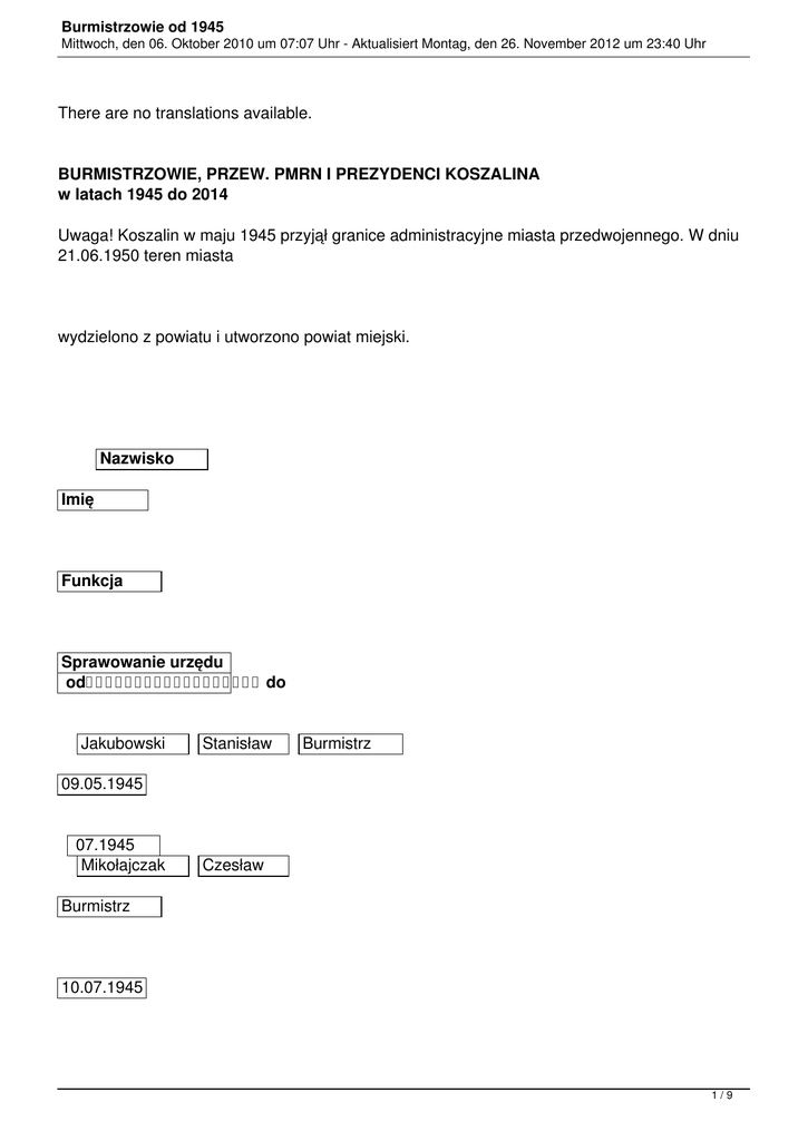 Burmistrzowie od 1945 - Stowarzyszenie Przyjaciół Koszalina