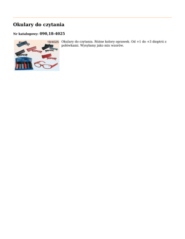 Okulary do czytania Nr katalogowy: 090,18-4025 Okulary do czytania. Różne kolory oprawek. Od +1 do +3 dioptrii z połówkami. Wysyłamy jako mix wzorów.