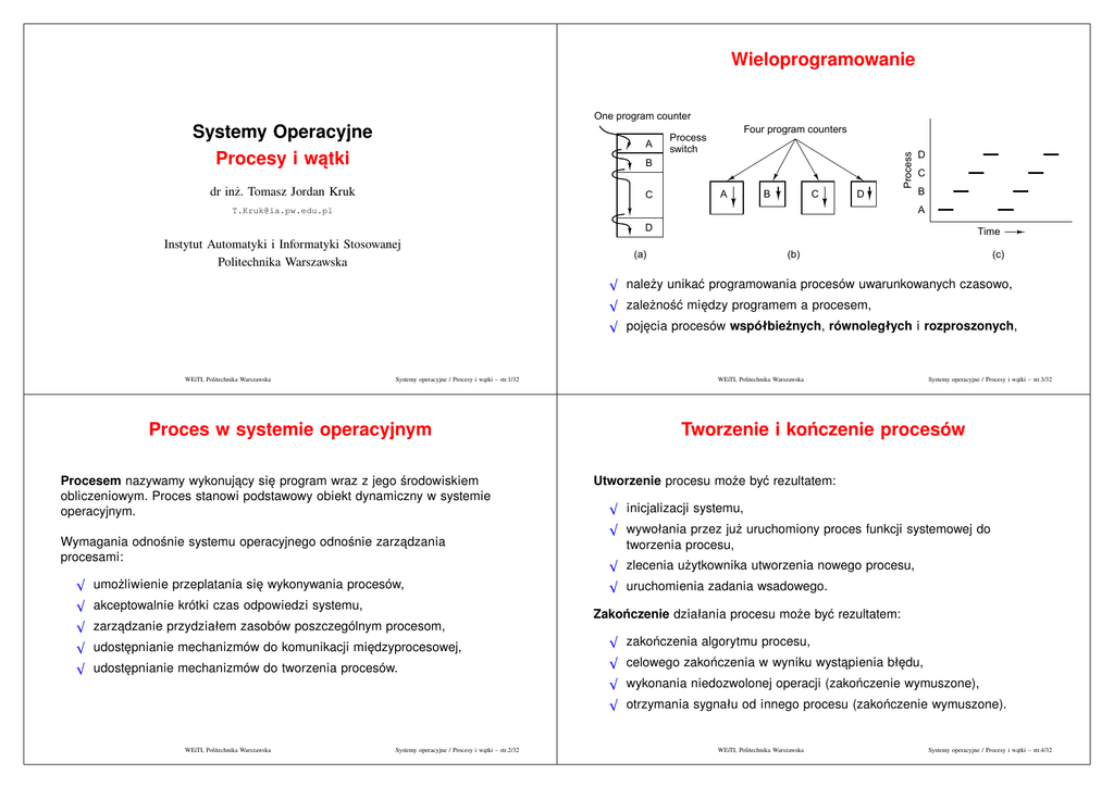 Systemy Operacyjne Procesy i wątki Proces w systemie