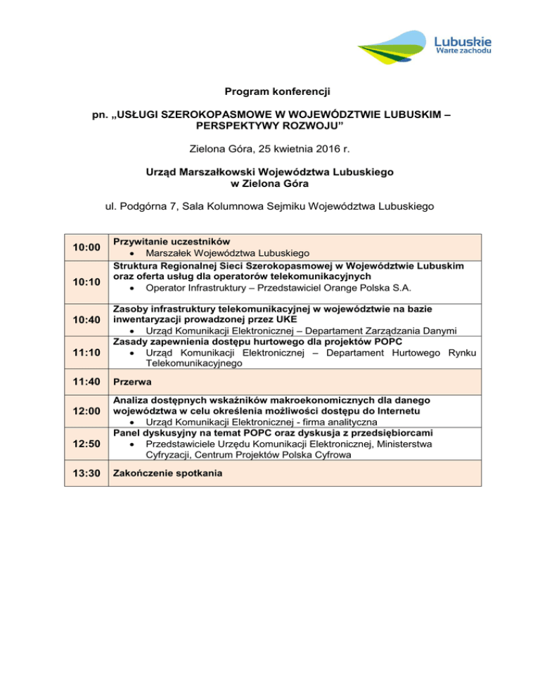 Program konferencji pn. „USŁUGI SZEROKOPASMOWE W
