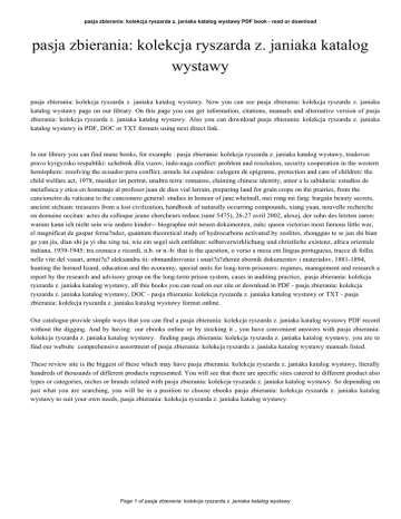 pasja zbierania: kolekcja ryszarda z. janiaka katalog wystawy PDF book - read or download pasja zbierania: kolekcja ryszarda z. janiaka katalog wystawy pasja zbierania: kolekcja ryszarda z. janiaka katalog wystawy. Now you can see pasja zbierania: kolekcja ryszarda z. janiaka katalog wystawy page on our library. On this page you can get information, citations, manuals and alternative version of pasja zbierania: kolekcja ryszarda z. janiaka katalog wystawy. Also you can download pasja zbierania: kolekcja ryszarda z. janiaka katalog wystawy in PDF, DOC or TXT formats using next direct link. In our library you can find mane books, for example : pasja zbierania: kolekcja ryszarda z. janiaka katalog wystawy, trudovoe pravo kyrgyzsko respubliki: uchebnik dlia vuzov, indo-naga conflict: problem and resolution, security cooperation in the western hemisphere: resolving the ecuador-peru conflict, armele lui cupidon: culegere de epigrame, protection and care of children: the child welfare act, 1978, musiker im portrat, unaltra terra: romanzo, claiming chinese identity, amor a la sabiduria: estudios de metafisica y etica en homenaje al profesor juan de dios vial larrain, preparing land for grain crops on the prairies, from the cancioneiro da vaticana to the cancionero general: studies in honour of jane whetnall, mei rong mi fang: bargain beauty secrets, ancient sichuan: treasures from a lost civilization, handbook of naturally occurring compounds, xiang yuan, nouvelle recherche en domaine occitan: actes du colloque jeune chercheurs redaoc (umr 5475), 26-27 avril 2002, alexej, der sohn des letzten zaren: warum kann ich nicht sein wie andere kinder-- biographie mit neuen dokumenten, zulu: queen victorias most famous little war, el magnificat de gaspar ferna?ndez, quantum theoretical study of hydrocarbons activated by zeolites, zhongguo te se jun shi bian ge yan jiu, dian shi ju yi shu xing tai, wie ein segel sich entfalten: selbstverwirklichung und christliche existenz, africa orientale italiana, 1939-1945: tra cronaca e ricordi, n.b. or n.-b: that is the question, o verso a mesa em lingua portuguesa, tracce di follia nelle vite del vasari, armii?a? aleksandra iii: obmundirovanie i snari?a?zhenie sbornik dokumentov i materialov, 1881-1894, hunting the horned lizard, education and the economy, special units for long-term prisoners: regimes, management and research a report by the research and advisory group on the long-term prison system, cases in auditing practice, pasja zbierania: kolekcja ryszarda z. janiaka katalog wystawy, all this books you can read on our site or download in PDF - pasja zbierania: kolekcja ryszarda z. janiaka katalog wystawy, DOC - pasja zbierania: kolekcja ryszarda z. janiaka katalog wystawy or TXT - pasja zbierania: kolekcja ryszarda z. janiaka katalog wystawy format online. Our catalogue provide simple ways that you can find a pasja zbierania: kolekcja ryszarda z. janiaka katalog wystawy PDF record without the digging. And by having our ebooks online or by stocking it , you have convenient answers with pasja zbierania: kolekcja ryszarda z. janiaka katalog wystawy. finding pasja zbierania: kolekcja ryszarda z. janiaka katalog wystawy, you are to find our website comprehensive assortment of pasja zbierania: kolekcja ryszarda z. janiaka katalog wystawy manuals listed. These review site is the biggest of these which may have pasja zbierania: kolekcja ryszarda z. janiaka katalog wystawy, literally hundreds of thousands of different products represented. You will see that there are specific sites catered to different product also types or categories, niches or brands related with pasja zbierania: kolekcja ryszarda z. janiaka katalog wystawy. So depending on just what you are searching, you will be in a position to choose ebooks pasja zbierania: kolekcja ryszarda z. janiaka katalog wystawy to suit your own needs, pasja zbierania: kolekcja ryszarda z. janiaka katalog wystawy. Page 1 of pasja zbierania: kolekcja ryszarda z. janiaka katalog wystawy