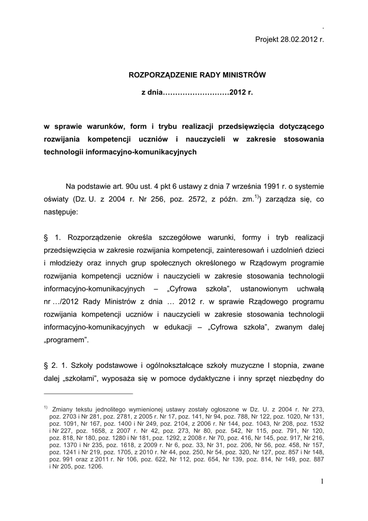 . 1 Projekt 28.02.2012 r. ROZPORZĄDZENIE RADY MINISTRÓW z