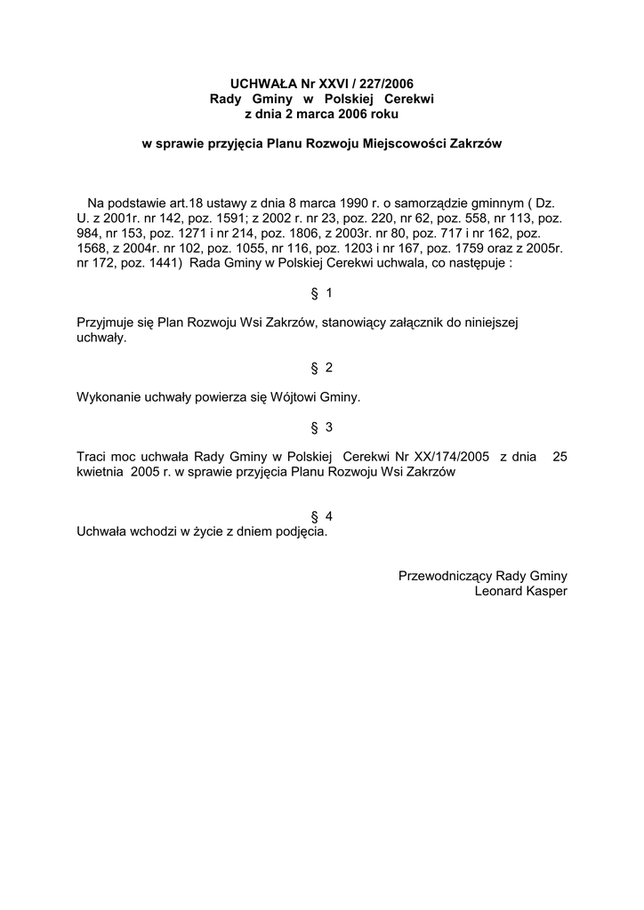 UCHWAŁA Nr XXVI / 227/2006 Rady Gminy w Polskiej Cerekwi z