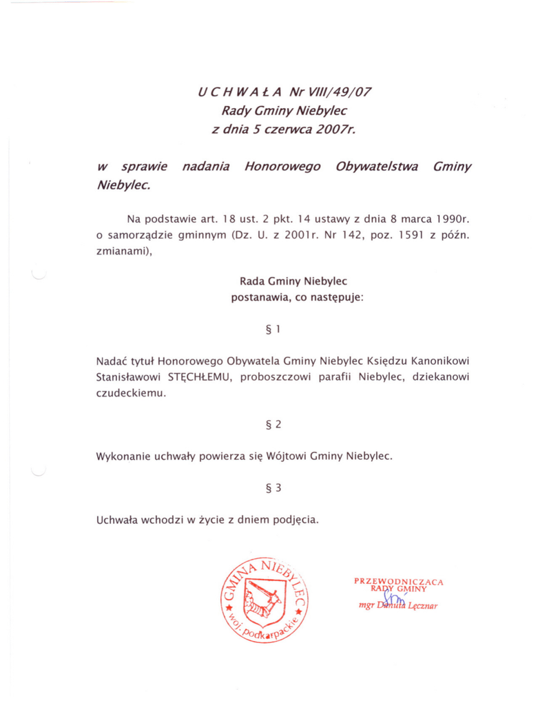 uC H WA lA Nr VIII/49/07 Rady Gminy Niebylec z