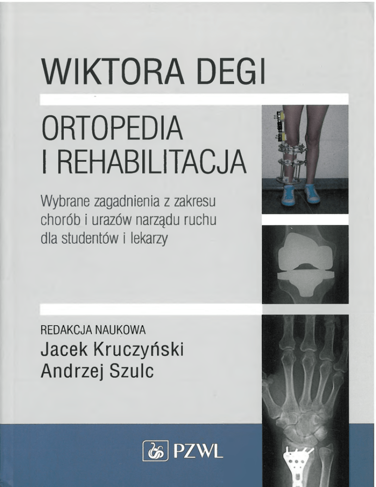 WIKTORA DEGI ORTOPEDIA I REHABILITACJA Wybrane zagadnienia z zakresu chorób i urazów narządu ruchu dla studentów i lekarzy REDAKCJA NAUKOWA Jacek Kruczyński Andrzej Szulc WIKTORA DEGI ORTOPEDIA I REHABILITACJA Wybrane zagadnienia z zakresu chorób i urazów narządu ruchu dla studentów i lekarzy REDAKCJA NAUKOWA prof. dr hab. med. Jacek Kruczyński prof. dr hab. med. Andrzej Szulc & PZW L I Spis treści Słowo wstępne I 15 Przedmowa do wydania pierwszego I 17 CZĘŚĆ 5 0 19 1. Historia ortopedii I 21 Andrzej Nowakowski, Paweł Kokoszka 2. Mianownictwo □ 27 Akronimy i skróty Marek Jóźwiak, Maciej Brąborowicz 3. Wprowadzenie do badania ortopedycznego I 39 W iktor Dega, W itold Marciniak, Marek Jóźwiak 4. Obrazowanie narządu ruchu I 71 Iwona Kraśny, Łukasz Łapaj 5. Diagnostyka neurofizjologii klinicznej w ortopedii i rehabilitacji Juliusz Huber 6. Wzrost kości II 83 Paweł Koczewski 7. Zaburzenia metabolizmu tkanki kostnej. Osteoporoza I 85 Paweł Koczewski 8. Biologia zrostu kostnego. Zaburzenia zrostu kostnego I 89 Paweł Koczewski 9. Kompensacja i adaptacja w narządzie ruchu I 93 Tomasz Kotwicki, Stanisław Piątkowski 10, Podstawy biomechaniki człowieka. Chód I 97 Marek Jóźwiak, Faustyna Manikowska, Brian Po-Jung Chen 11, Metody leczenia ortopedycznego H 107 Łukasz Łapaj 12 Podstawowe zagadnienia traumatologii narządu ruchu I Tomasz Owczarski 13, Uszkodzenia ścięgien zginaczy i prostowników ręki I 127 Robert Spławski 14 Uszkodzenia ścięgna Achillesa I 131 Łukasz Paczesny 15. Specyfika złamań kości u dzieci 1 135 Milud Shadi, Maciej Idzior 121 I 77 10 Wiktora Degi ortopedia i rehabilitacja 16. Traumatologia sportowa 1 139 Jacek Kruczyński, Przem ysław Lubiatowski, Wojciech Jurasz, Jacek Jaroszewski 17. Odruchowa dystrofia współczulna I 149 Przem ysław Lubiatowski Zespoły ciasnoty przedziałów powięziowych 1 153 Marek Tomaszewski, Robert Spławski 19. Mikrochirurgia 1 157 Leszek Romanowski, Marta Ślęzak 20. Infekcje kości i stawów ■ 163 Jacek Markuszewski 2 1 Gruźlica kostno-stawowa I 169 Łukasz Łapaj 2 2 . Problem żylnej choroby zakrzepowo-zatorowej I 173 Zbigniew Krasiński, Wojciech Marczyński, Dariusz Chmielewski Zasady profilaktyki żylnej choroby zakrzepowo-zatorowej w ortopedii i traumatologii narządu ruchu i 179 Dariusz Chmielewski, Wojciech Marczyński, Z big n ie w Krasiński 24 Nowotwory narządu ruchu I 1 85 Jacek Markuszewski, Karol Balcerkiewicz, Andrzej Szulc, Andrzej Marszałek, Maciej Bręborowicz 25 Choroba zwyrodnieniowa stawów 1 217 Małgorzata Wierusz-Kozłowska, Łukasz Łapaj, Jacek M arkuszewski, Leszek Kaczmarek Endoprotezoplastyka stawów 1 231 Jacek Markuszewski, Paweł Kokoszka, Piotr Ogrodowicz Układowe zniekształcenia i choroby narządu ruchu I 243 Michał Walczak, Tomasz Kotwicki Choroby reumatyczne z punktu widzenia ortopedycznego I 255 Waldemar Woźniak, Leszek Kaczmarek Wady w postawie ciała I 263 Tomasz Kotwicki Zaburzenia osi i nierówność kończyn. Metoda llizarowa 1 269 Paweł Koczewski, Milud Shadi, Leszek Romanowski Choroby przeciążeniowe I 289 Wojciech Strzyżewski, Łukasz Paczesny Martwice niedokrwienne kości I 301 Jacek Kruczyński, Leszek Romanowski Przepuklina oponowo-rdzeniowa R 309 Andrzej Szulc, Marek Jóźwiak, W itold Marciniak, Piotr Harasymczuk Mózgowe porażenie dziecięce I 323 Marek jóźw iak, Maciej Idzior 3! Ręka spastyczna I 337 Leszek Kaczmarek Neuropatie uciskowe I 341 Paweł Surdziel 11 Spis treści Uszkodzenia nerwów I 347 Leszek Romanowski, Anna W awrzyniak-Bieląda Rehabilitacja medyczna w chorobach narządu ruchu I 353 Cele i zadania usprawniania chorych z dysfunkcjami narządu ruchu Marek Jóźwiak, Edyta Kinel, Przemysław Lisiński, Marian Majchrzycki, Maria Szymczak Zaopatrzenie ortopedyczne 1 3 7 7 Marek Jóźwiak, Piotr Czarnecki, Marta Jokiel Amputacje i protezowanie kończyn 1 393 Marek Jóźwiak, Piotr Czarnecki, Marta Jokiel C Z Ę Ś Ć SI i 413 KRĘGOSŁUP, KLATKA PIERSIOWA, MIEDNICA I 415 41 Kręcz szyi I 4 1 7 Tomasz Kotwicki Skrzywienia kręgosłupa 1 421 Maciej Głowacki, Tomasz Kotwicki, Jacek Kaczmarczyk Choroba Scheuermanna I 4 4 5 Tomasz Kotwicki Klatka piersiowa lejkowata i kurza 1 4 4 9 Tomasz Kotwicki Kręgoszczelina i kręgozmyk 1 4 5 3 Łukasz Bartochowski, Wojciech Jurasz Choroby krążka międzykręgowego E 4 5 9 Łukasz Kubaszewski Zespoły bólowe kręgosłupa. Choroba zwyrodnieniowa kręgosłupa I 463 Andrzej Nowakowski, Łukasz Kubaszewski Złamania kręgosłupa 1 4 6 9 Andrzej Nowakowski, Łukasz Kubaszewski Obrażenia miednicy I 473 Jacek Markuszewski KOŃCZYNA GÓRNA 1 481 Wady wrodzone kończyny górnej I 483 Leszek Kaczmarek BARK I 489 Bolesny bark I 491 Przemysław Lubiatowski Niestabilność stawu ramiennego I 4 9 7 Przem ysław Lubiatowski Obrażenia okolicy barku B 503 Przemysław Lubiatowski Wiktora Degi ortopedia i rehabilitacja 12 ŁOKIEĆ 1 5 0 9 54 Entezopatie okolicy stawu łokciowego 0 511 Piotr Ogrodowicz Przykurcz stawu łokciowego I 515 Piotr Ogrodowicz Obrażenia okolicy łokcia 1 5 1 9 Piotr Ogrodowicz NADGARSTEK I RĘKA I 529 57. Przykurcz Dupuytrena I 531 Piotr Czarnecki Choroba de Quervaina 1 533 Piotr Czarnecki Zakleszczające zapalenie pochewki ścięgien 1 537 Piotr Czarnecki 6 0 Bolesny nadgarstek i 539 Piotr Czarnecki 61 Obrażenia okolicy nadgarstka i ręki I 543 Piotr Czarnecki KOŃCZYNA DOLNA i 549 STAW BIODROW Y. UDO 1 551 6 2 Biodro szpotawe dziecięce 1 553 Milud Shadi, Paweł Koczewski 63 Wrodzony niedorozwój uda 1 555 Milud Shadi, Paweł Koczewski 6 4 Rozwojowa dysplazja i zwichnięcie stawu biodrowego 1 559 Marek Jóźwiak, Jacek Kruczyński, Milud Shadi Ropne zapalenie stawu biodrowego u dzieci B 577 Micha! Walczak Młodzieńcze złuszczenie głowy kości udowej I 581 Paweł Koczewski, Waldemar Woźniak, Wojciech Strzyżewski Przemijające zapalenie stawu biodrowego 1 585 Micha! Walczak Choroba Perthesa I 589 Michał Walczak Pierwotna protruzja panewki stawu biodrowego I 593 Jacek K