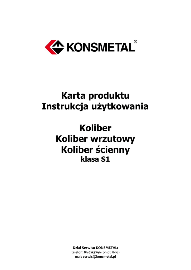 Karta produktu Instrukcja użytkowania Koliber Koliber wrzutowy Koliber ścienny klasa S1 Dział Serwisu KONSMETAL: telefon: 89 6253799 (pn-pt 8-16) mail: [email protected] Sejfy Koliber Spis treści Zastosowanie ........................................................................................................................ 3 Certyfikaty do przechowywania ......................................................................................... 3 Ważne – przeczytaj przed rozpoczęciem użytkowania sejfu ........................................ 4 Opis produktu ....................................................................................................................... 4 Wyposażenie podstawowe ................................................................................................. 5 Wyposażenie dodatkowe (opcjonalne)............................................................................. 5 Rodzaje zamków .................................................................................................................. 5 Standardowe kolory ............................................................................................................ 5 Dane techniczne .................................................................................................................. 6 Montaż ................................................................................................................................... 8 Obsługa sejfu – otwieranie ................................................................................................ 9 Obsługa sejfu – zamykanie ................................................................................................ 9 Wymiana baterii w zamku elektronicznym ...................................................................... 9 Montaż półek ...................................................................................................................... 10 Eksploatacja........................................................................................................................ 11 Regulacja zawiasów .......................................................................................................... 11 Najczęściej występujące problemy i sposoby ich usunięcia ........................................ 12 str. 2 Sejfy Koliber Zastosowanie Rodzina Koliber to nowoczesne, wysokiej jakości modele sejfów odpowiednie do przechowywania biżuterii, broni, amunicji itp. Do przechowywania komputerów przenośnych zalecane są modele „Laptop”. Produkty z rodziny Koliber cechuje duża pojemność przy zoptymalizowanych do potrzeb domowych i biurowych wymiarach zewnętrznych. Sejfy Koliber w zależności od modelu przystosowane są do montażu w ścianach lub meblach, mogą być również wykorzystywane jako sejfy wolnostojące, po uprzednim przymocowaniu ich do podłoża. Certyfikaty do przechowywania Wartości pod nadzorem zgodnie z normą europejską PN-EN 14450:2006, klasa S1. Możliwość przechowywania broni palnej i amunicji: Produkt spełnia wymogi Rozporządzenia Ministra Spraw Wewnętrznych i Administracji z dnia 26 sierpnia 2014 r. w sprawie przechowywania, noszenia oraz ewidencjonowania broni i amunicji. UWAGA! Aby produkt zachował klasę odporności sejf czy szafa o wadze do 1000kg musi być zakotwiony do podłoża (modele wolnostojące) lub zabudowany w ścianie (modele do zabudowy) zgodnie z instrukcją. str. 3 Sejfy Koliber Ważne – przeczytaj przed rozpoczęciem użytkowania sejfu Proszę uważnie zapoznać się z niniejszą instrukcją i stosować się do jej zapisów. Jeśli urządzenie wyposażone jest w zamek szyfrowy i/lub elektroniczny ZAWSZE pamiętaj o zmianie szyfru fabrycznego na własny, nieznany osobom postronnym, PRZED rozpoczęciem użytkowania urządzenia. Pozostawienie szyfru fabrycznego stanowi zagrożenie dla bezpieczeństwa zdeponowanych w nim wartości. Zmiana szyfru oraz test nowego szyfru w zamku szyfrowym lub elektronicznym MUSI być wykonywana na otwartych drzwiach sejfu. Zmieniając szyfr na zamkniętych drzwiach narażasz się na konieczność ich awaryjnego serwisowego otwarcia. Jeśli sejf jest wyposażony w klamkę lub pokrętło do poruszania rygli otwarcie lub domknięcie drzwi należy wykonywać WYŁĄCZNIE trzymając za klamkę lub pokrętło do poruszania rygli. Otwieranie czy zamykanie drzwi sejfu poprzez ciągnięcie za klucz, pokrętło zamka szyfrowego czy klawiaturę zamka elektronicznego może skutkować uszkodzeniem wyrobu niepodlegającym gwarancji. Przed zamknięciem drzwi sejfu KONIECZNIE sprawdź czy rygle są maksymalnie schowane. Wysunięte rygle podczas zamykania drzwi sejfu mogą uszkodzić powłokę lakierniczą w miejscu uderzenia rygli o krawędź otworu drzwiowego. Aby schować rygle korzystaj z klamki lub zamka, próby bezpośredniego nacisku na rygle mogą spowodować zablokowanie się mechanizmu. Takie uszkodzenia nie są traktowane jako podstawa do naprawy gwarancyjnej. Na końcu niniejszej instrukcji znajdują się opisy postępowania przy najczęściej występujących problemach. Opis produktu Korpus sejfów Koliber wykonany jest z wysokiej jakości blachy, o podwyższonej odporności na sforsowanie; Najwyższe standardy bezpieczeństwa gwarantuje również: wzmocniona płyta drzwi o grubości 5 mm z dodatkową osłoną mechanizmu ryglowego i zamka; solidne rygle o średnicy 20 mm; dodatkowe zabezpieczenie chroniące przed przewierceniem rygli; wewnętrzna i zewnętrzna blokada drzwi uniemożliwiająca otwarcie zaryglowanego sejfu po wycięciu zawiasów; W obrysie drzwi znajdują się progi utrudniające dostęp do rygli, a także chroniące przed wepchnięciem drzwi sejfu do środka podczas próby sforsowania; Ryglowanie drzwi odbywa się za pomocą rygli ruchomych; Drzwi z zawiasowaniem wewnętrznym; Kąt otwarcia drzwi 1000; Sejfy malowane są trwałymi powłokami z lakierów proszkowych; Gwarancja 24 miesi
