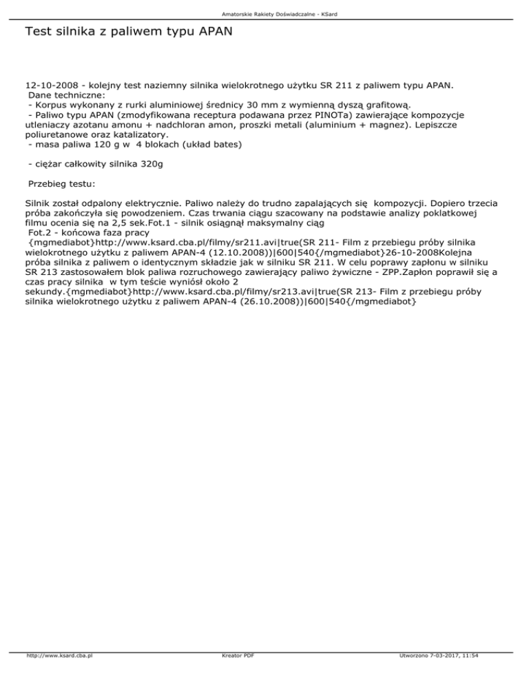 {mgmediabot}http://www.ksard.cba.pl/filmy/sr211.avi|true(SR 211- Film z przebiegu próby silnika