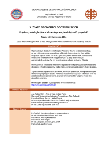 Komunikat 3 - X Zjazd Geomorfologów Polskich 2014