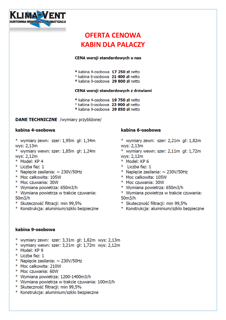 oferta cenowa kabin dla palaczy - Klima-Vent