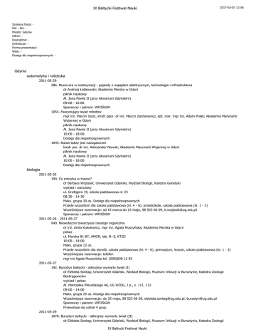 Gdynia automatyka i robotyka biologia IX Bałtycki Festiwal Nauki