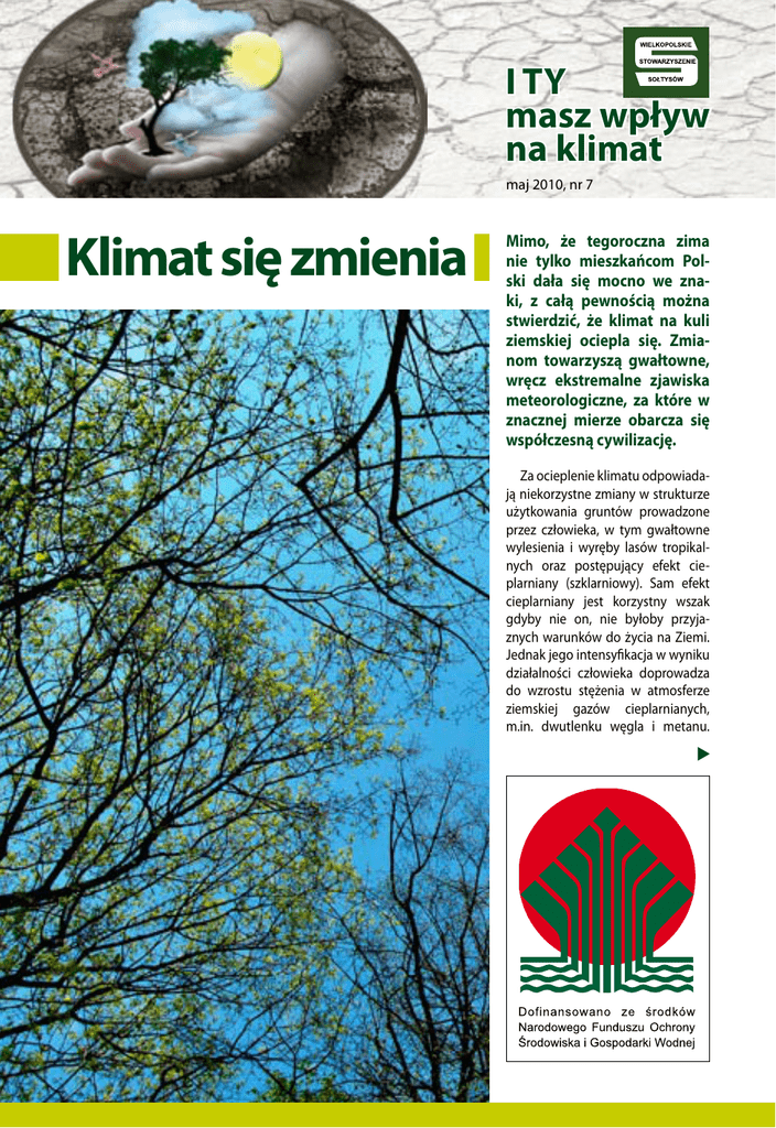 I TY masz wpływ na klimat maj 2010, nr 7 Klimat się zmienia Mimo, że tegoroczna zima nie tylko mieszkańcom Polski dała się mocno we znaki, z całą pewnością można stwierdzić, że klimat na kuli ziemskiej ociepla się. Zmianom towarzyszą gwałtowne, wręcz ekstremalne zjawiska meteorologiczne, za które w znacznej mierze obarcza się współczesną cywilizację. Za ocieplenie klimatu odpowiadają niekorzystne zmiany w strukturze użytkowania gruntów prowadzone przez człowieka, w tym gwałtowne wylesienia i wyręby lasów tropikalnych oraz postępujący efekt cieplarniany (szklarniowy). Sam efekt cieplarniany jest korzystny wszak gdyby nie on, nie byłoby przyjaznych warunków do życia na Ziemi. Jednak jego intensyfikacja w wyniku działalności człowieka doprowadza do wzrostu stężenia w atmosferze ziemskiej gazów cieplarnianych, m.in. dwutlenku węgla i metanu. Mechanizm efektu cieplarnianego można przedstawić w prosty sposób. Energia promienista w zakresie fal krótkich (światło) dociera do powierzchni Ziemi, przez którą jest pochłaniana lub odbijana. Odbita część promieniowania przechodzi przez atmosferę i opuszcza układ Ziemia – atmosfera. Część pochłonięta zwiększa poziom energii powierzchni Ziemi, co powoduje wzmożoną emisję promieniowania długofalowego (ciepła) przez tę powierzchnię. Promieniowanie cieplne nie może przejść przez atmosferę, ponieważ jest pochłaniane przez gazy szklarniowe (głównie przez parę wodną i CO2) znajdujące się w atmosferze. Tak nie powinno się dziać, ponieważ energia docierająca ze Słońca musi być równa sumie energii odbitej od powierzchni Ziemi i energii cieplnej wyemitowanej przez układ Ziemia – atmosfera. To zjawisko nazywamy efektem cieplarnianym. W ostatnim stuleciu w atmosferze stale wzrasta koncentracja dwutlenku węgla wytwarzanego przez zwierzęta, ludzi oraz samochody, samoloty i inne maszyny zużywające paliwa kopalne. Rośliny nie są w stanie pochłonąć nadmiaru tego gazu w procesie fotosyntezy. Szacuje się, że jeśli emisja dwutlenku węgla nie ulegnie redukcji, to około 2040 r. jego stężenie podwoi się w stosunku do 1900 r., a to spowoduje podwyższenie temperatury przy powierzchni Ziemi o 2 do 6 st. C. Badania ostatnich dziesięcioleci jednoznacznie potwierdzają, że zmiany klimatu mają miejsce. Tak niespotykane anomalie nie mogą być wynikiem naturalnych cykli w przyrodzie. Osta- 2 nie badania agencji NASA pokazują, że średnia temperatura globalna podnosi się. Dekada 2000-2009 jest najcieplejsza od 1880 r., wtedy to po raz pierwszy zaczęto regularne pomiary temperatury. Rok 2009, mimo rekordowej zimy w Europie przyniósł ogromne upały i susze w Australii, a w Ameryce Północnej, zwłaszcza w Kanadzie wystąpiły temperatury średnio o 4 st. C wyższe niż przeciętne. Jako skutki zmian klimatycznych uznaje się wzrost temperatury wód oceanicznych i ich zasolenia, zmiany w rozmieszczeniu opadów, wzrost w regionach wilgotnych i spadek w regionach suchych. Ponadto powierzchnia lasów na kuli ziemskiej maleje wskutek nadmiernych wyrębów i wypalania, zaś zdrowy drzewostan ma zasadnicze znaczenie w regulacji zawartości dwutlenku węgla w atmosferze. Jeden hektar lasu pochłania 250 kg tego związku. Oceany nie mogą „zużyć” ogromnych ilości CO2, gdyż ich zanieczyszczone wody stają się coraz mniej przeźroczyste, co zmniejsza intensywność fotosyntezy roślin wodnych i glonów. Te wszystkie niekorzystne zjawiska powodują, że bilans emisji dwutlenku węgla w atmosferze ziemskiej nie zamyka się. Dotychczas zidentyfikowano ponad 30 gazów odpowiedzialnych za ocieplenie klimatu; najważniejsze z nich to dwutlenek węgla, tlenki azotu, metan i freony. Największy udział w powstawaniu efektu szklarniowego, bo aż 50 proc. ma dwutlenek węgla. Drugim gazem jest metan wytwarzany przez bakterie w procesach rozkładu szczątków roślinnych i zwierzęcych, podczas beztlenowego rozkładu odchodów zwierząt oraz spalania substancji organicznych. Naturalne ekosystemy i uprawy rolne wydzielają około 75 proc. metanu, ale za nadmiar tego gazu w powietrzu jest również odpowiedzialne składowanie odpa- dów organicznych na wysypiskach oraz przemysł wydobywczy. Tlenki azotu emitowane są jako składniki gazów spalinowych w energetyce i transporcie oraz w produkcji i stosowaniu nawozów azotowych. Mają one 6 proc. udziału w kształtowaniu klimatu na naszej planecie. Ozon, gaz szklarniowy występujący w sposób naturalny w górnych warstwach atmosfery, chroniący przed szkodliwym promieniowaniem ultrafioletowym słońca, gromadząc się w niższych warstwach powietrza również przyczynia się do powstania efektu szklarniowego. Jest bardzo efektywny w zatrzymywaniu ciepła w atmosferze. Zawartość ozonu systematycznie wzrasta, o około 2 proc. rocznie. Powstaje, gdy energia słoneczna pobudza reakcję chemiczną tlenku węgla, węglowodorów i tlenków azotu wydalanych przez rury wydechowe i kominy. Freony w sposób naturalny nie występują w atmosferze i są sztucznie wytwarzane przez człowieka. Ich ilość jest stosunkowo niewielka w porównaniu z masą wydalanego dwutlenku węgla, lecz są one bardzo efektywne w pochłanianiu ciepła i potrafią przez długi okres czasu znajdować się w stanie nienaruszonym w atmosferze ziemskiej. Naukowcy zwracają uwagę, że co prawda obecnie dwutlenek węgla ma największy wpływ na efekt cieplarniany i na ocieplenie klimatu, jednak oddziaływanie pozostałych gazów na oba niekorzystne zjawiska będzie wzrastało, ponieważ silniej pochłaniają promieniowanie podczerwone. Grażyna Kaniewska Fot. Agnieszka Kaniewska Europa może ograniczyć emisję gazów cieplarnianych nawet do 40 proc. do 2020 r. i do 90 proc. do 2050 r. – twierdzą autorzy raportu przygotowanego przez Instytut Środowiska w Sztokholmie we współpracy z organizacją pozarządową Friends of the Earth Europe. W raporcie podano przykł