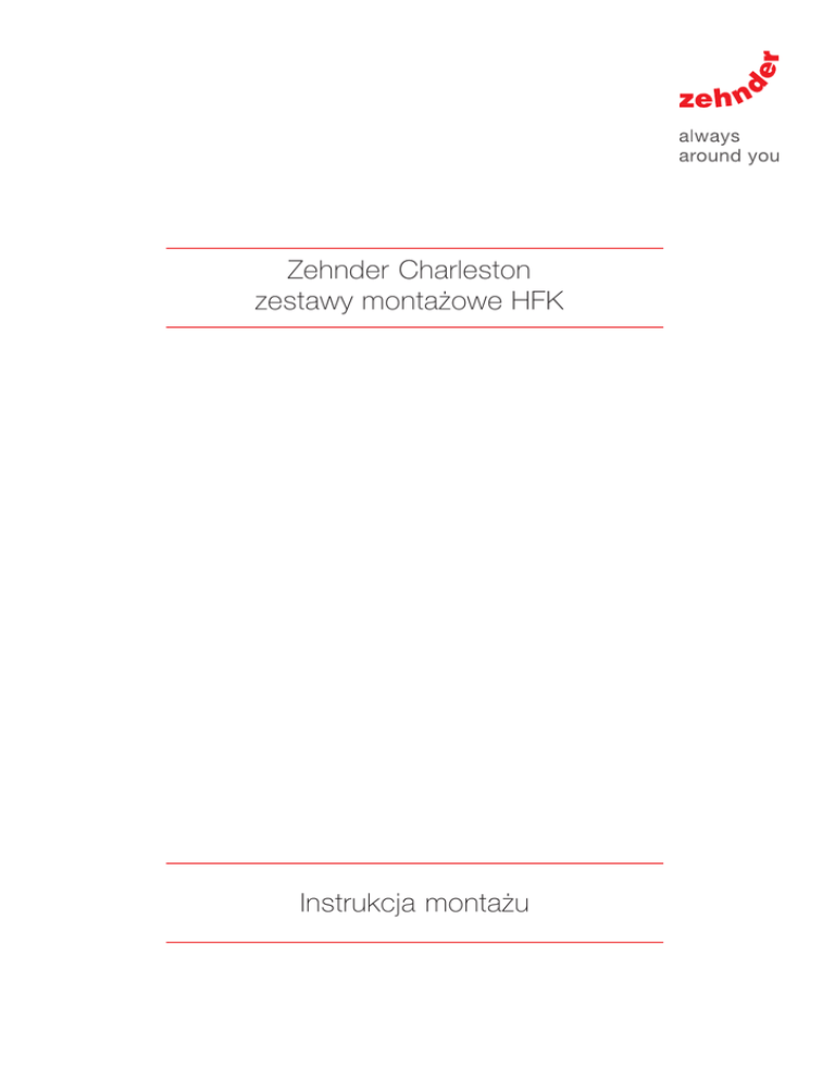 Zehnder Charleston zestawy montażowe HFK Instrukcja montażu Chroń powierzchnię!