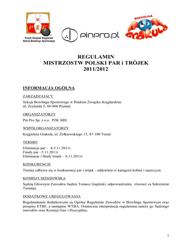 REGULAMIN MISTRZOSTW POLSKI PAR i TRÓJEK 2011/2012