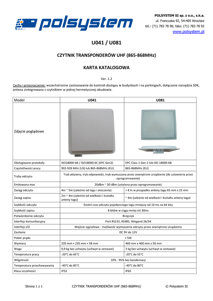 Czytnik UHF U041_U081_karta katalogowa_1.2