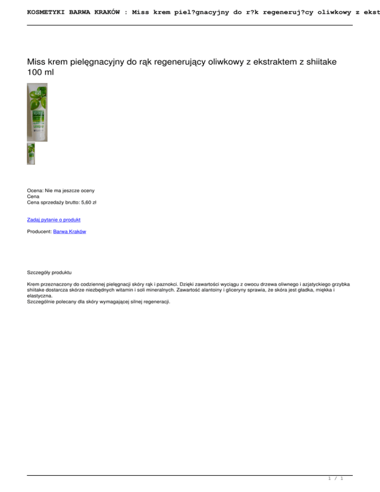 Miss krem pielęgnacyjny do rąk regenerujący oliwkowy z ekstraktem