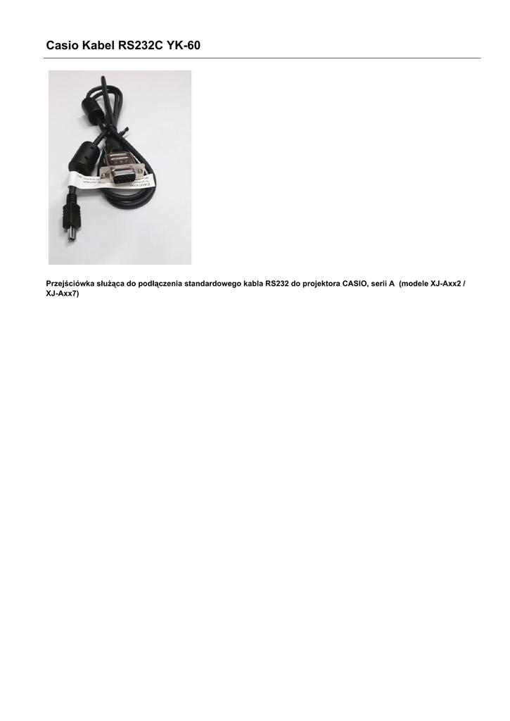 Casio Kabel RS232C YK-60 Przejściówka służąca do podłączenia standardowego kabla RS232 do projektora CASIO, serii A (modele XJ-Axx2 / XJ-Axx7)