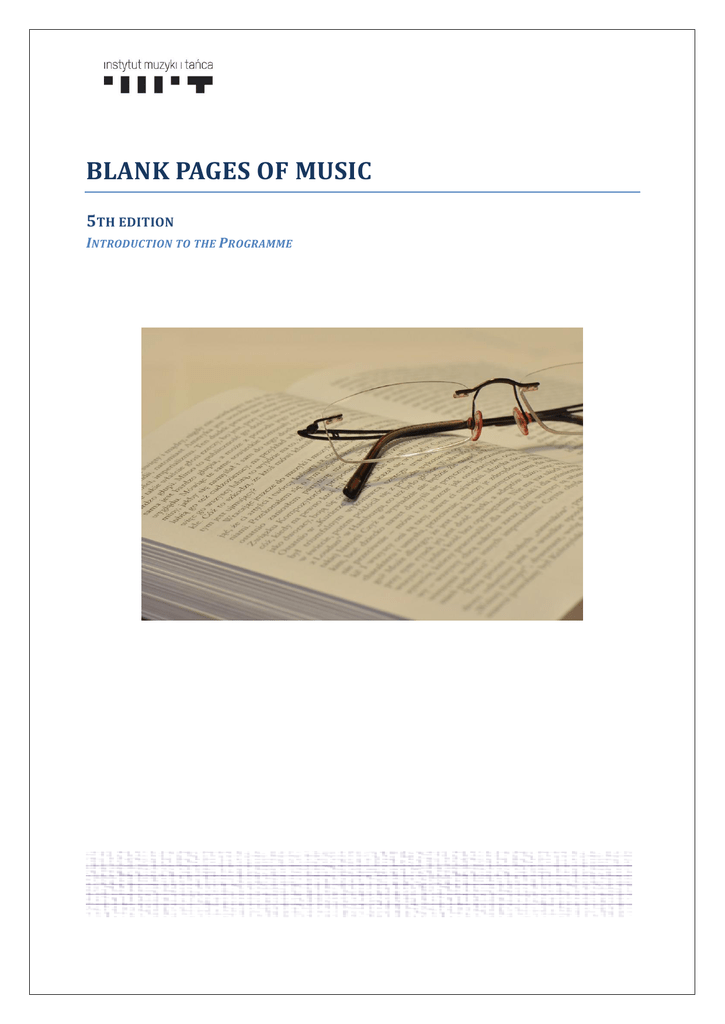 BLANK PAGES OF MUSIC 5TH EDITION INTRODUCTION TO THE PROGRAMME THE IDEA OF THE PROGRAMME The idea of the programme “Blank Pages of Music” run by the Institute of Music and Dance is to support academic research related to little known or neglected areas of Polish music. The scope of the third edition of the programme was extended to include research on Polish dance and dance in Poland. The programme’s operating principle is its inclusiveness. The research may be devoted to Polish music and dance in the broadest time and genre perspective. By “blank pages” the creators of the programme understand all subjects related to Polish music or dance which have never been studied before, or have been studied only partially, fragmentally, or superficially. Consequently, the programme is addressed not only to musicologists and theoreticians of music or dance, but also specialists in broadly understood humanities, e.g. in sociology, culture studies, theatre studies, as well as instrumentalists and teachers. As regards music research, apart from studies devoted to the 800 years of Polish classical music’s history and the broad spectrum of phenomena related to it – ranging from the oldest musical pieces to the most contemporary ones – the programme is open to studies of other musical genres, such as traditional music, jazz, film music or popular music. The research may be devoted to reception of music, performance, musicological activity, education, broadly understood contemporary music culture, analysis and interpretation of different phenomena, preparation of musical works reconstructions, catalogues of artistic output, databases, studies of source materials, etc. To be eligible for the programme, research projects on dance should also be devoted to areas where bank pages are most frequent – the history, theory and aesthetics of Polish dance, in particular performance dance. The choice of subject and form of the research outcome (book, lecture, academic paper, presentation, catalogue, sheet music) is left fully for the author to make. The programme is dedicated to Polish and foreign researchers in equal measure, and the research may be conducted also outside of Poland. DETAILS AND ORGANISATION OF THE PROGRAMME The programme “Blank Pages of Music” is open to Polish and foreign researchers who hold a degree in higher education and have a documented history of research in the sphere of science, humanities or education. Applications may be submitted by individual researchers or a group of researchers (up to 3 persons), understood as natural persons, not legal persons. In the case of individual researchers the maximum grant that may be awarded is PLN 10 000, while with respect to a group of researchers – the total grant is PLN 20 000 to be divided among the participants according to their suggestion. The research should be carried out between 1 October 2015 and 30 June 2016. The Institute will make a contract with each participant of the programme under which the Institute will pay out the grant awarded for the research work to be done and obtain a non-exclusive licence to manage the outputs of the research as long as the author’s economic rights are valid. Part of the grant will be paid out in advance (25% of the sum after the contract is signed and 50% by the end of 2015 after a work progress report has been submitted), while the remainder will be paid after the project’s output is presented to the Institute, which should happen on or before 31 July 2016. As mentioned above, based on the contract the Institute obtains a nonexclusive licence to manage the outputs of the research as long as the author’s economic rights are valid. This means that the Institute will have a non-exclusive right to manage the materials submitted during the author’s life and 70 years after his or her death. Having signed the nonexclusive licence, the author reserves the right to grant subsequent non-exclusive licences to other entities and publish the work, but cannot grant an exclusive licence or assign his or her economic rights in full to third parties. Works created as a result of the programme will be published on the Institute’s website; depending on the possibilities, as well as the characteristics and uniqueness of the works, the Institute may also undertake steps for the works to be released by external publishers. Twenty-five percent of the 2015/16 edition’s budget shall be earmarked for research devoted to the life and work of Michał Kleofas Ogiński, the history of the genre and the practice of playing and dancing the polonaise, as well as the history of the Podhale bagpipe, its construction and method of playing. If they are not used for the original purpose, the funds shall be used to support other projects submitted. THE PROGRAMME’S EFFECTS TO DATE To date the programme has brought about seventeen research studies covering a broad spectrum of genres, styles and periods of Polish music: First edition (2011/2012): Ewa Czachorowska-Zygor – Twórczość symfoniczna i kameralna Adama Walacińskiego. Prezentacja. Interpretacja [Symphonic and chamber works of Adam Walaciński: presentation, interpretation]; Tomasz Dziedzic, Marek Gaszyński – Polski Rock and Roll 1956-1968. Poza anteną i prasą (uwarunkowania, twórczość, patologia) [Polish Rock and Roll 1956-1968: unbroadcast and unpublished (conditions, works, pathologies); Magdalena Szyndler – Repertuar muzyczny południowej części Śląska Cieszyńskiego (Beskid Śląski) – tradycja i współczesność [The music repertoire of southern Śląsk Cieszyński (Beskid Śląski) – past and present]; Mariusz Urban – Katalog zbioru muzykaliów zgromadzonych na chórze Kościoła pw. Najświętszego Imienia Jezus we Wrocławiu wraz z incypitami nutowymi [Catalogue of musical artefacts collected in the choir loft of the Church of the Holy Name of Jesus in Wrocław with incipits of music scores]. Second edition (2012/2013)