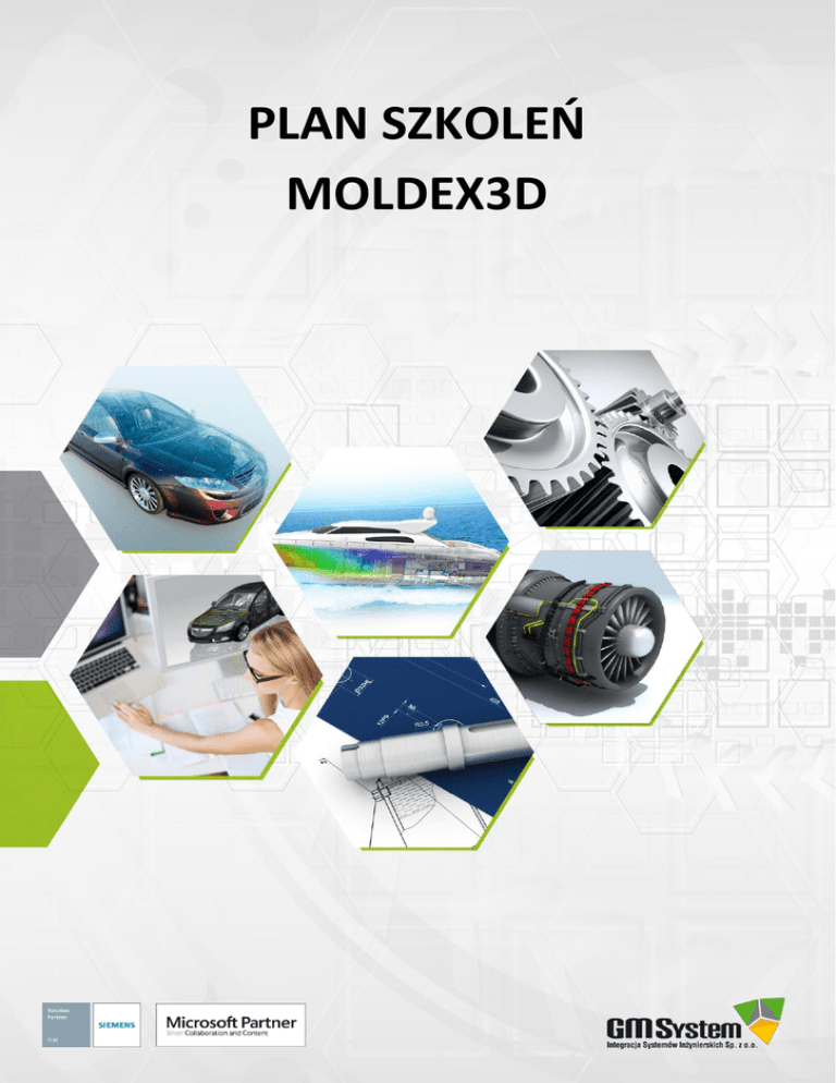 PLAN SZKOLEŃ MOLDEX3D PLAN SZKOLEŃ MOLDEX3D Firma GM System Integracja Systemów Inżynierskich Sp. z o.o. została założona w 2001 roku. Zajmujemy się dostarczaniem systemów CAD/CAM/CAE/PDM. Jesteśmy jednym z największych polskich dostawców tego rodzaju rozwiązań i kluczowym partnerem handlowym Siemens Industry Software, reprezentujemy w Polsce firmę Coretech System z Tajwanu oraz posiadamy tytuł Silver Collaboration and Content Microsoft Partner. Zajmujemy się doradztwem przy wyborze oprogramowania, sprzedażą oraz wdrożeniami (m.in. szkoleniami, dostosowaniem oprogramowania do indywidualnych potrzeb użytkownika, doborem sprzętu komputerowego). Nasi specjaliści publikują liczne opracowania z zakresu oprogramowania CAx. Nasza oferta: 2 Solid Edge – najefektywniejszy dostępny obecnie na rynku system CAD klasy mid-range, NX CAD/CAM/CAE – najlepszy system wspomagający projektowanie oraz wytwarzanie zawierający bogaty zestaw nowoczesnych narzędzi inżynierskich, Femap – zaawansowany system do analiz wytrzymałościowych MES, Moldex3D – oprogramowanie do przeprowadzania cyfrowej analizy procesu wtrysku tworzyw sztucznych, Cadenas PARTsolutions – zbiór modeli CAD 3D/2D standardowych części i podzespołów, Teamcenter – zintegrowany zestaw zaawansowanych aplikacji do zarządzania cyklem życia produktu, Solid Edge Insight – bazujący na platformie Microsoft SharePoint, efektywny i łatwy we wdrożeniu system do zarządzania procesem projektowania, Szkolenia CAD/CAM/CAE/PDM, Usługi w zakresie m. in. projektowania 3D, obliczeń wytrzymałościowych, programowania. Więcej informacji: Tel.: (+48) 71 791 30 51 [email protected] www.gmsystem.pl PLAN SZKOLEŃ MOLDEX3D Spis treści Szkolenie z obsługi oprogramowania do symulacji procesu wtrysku Moldex3D ................................................. 4 Konsultacje ................................................................................................................................................. 5 Uwagi ......................................................................................................................................................... 5 Ostatnia aktualizacja: 31.07.2015 3 PLAN SZKOLEŃ MOLDEX3D Szkolenie z obsługi oprogramowania do symulacji procesu wtrysku Moldex3D Czas trwania: 2 dni dla pakietów eDesign, 3 dni dla pakietów Advanced i Professional 1. Terminologia dotycząca procesu wtryskiwania tworzyw polimerowych 2. Typowe problemy procesu przetwórczego i ich wykrywanie w symulacji 3. Przygotowanie danych wejściowych do symulacji wtrysku 4. Generowanie siatki elementów skończonych 3D typu eDesign w module Designer a. Import geometrii CAD b. Kontrola i naprawa geometrii c. Analiza grubości ścian modelu d. Definiowanie wkładek w wyprasce i w formie e. Definiowanie układu wlewowego f. Definiowanie układu chłodzącego g. Ustawienia parametrów siatki 5. Generowanie siatki elementów skończonych 3D typu Solid w module Designer Advanced oraz w programie Rhinoceros (dotyczy konfiguracji Advanced) 6. Generowanie siatki elementów skończonych 2,5D typu Shell w programie Rhinoceros (dotyczy konfiguracji Professional i Advanced) 7. Przygotowanie projektu obliczeniowego a. Import siatki elementów skończonych b. Definiowanie materiału c. Definiowanie parametrów procesu d. Definiowanie parametrów solwera e. Definiowanie sekwencji przebiegów obliczeniowych 8. Metody wizualizacji wyników symulacji 9. Interpretacja wyników symulacji 10. Generowanie raportów z symulacji 4 PLAN SZKOLEŃ MOLDEX3D Konsultacje Konsultacje są najbardziej zaawansowanym modelem szkolenia. Zakres tematyczny ustalany jest z klientem indywidualnie i może obejmować zarówno wybrane zagadnienia z oferowanych szkoleń, jak i pomoc przy rozwiązywaniu bieżących problemów. Czas trwania oraz miejsce tych spotkań są ustalane z klientem indywidualnie. Uwagi Szkolenia odbywają się w biurach GM System we Wrocławiu i w Bydgoszczy. Warunkiem uczestnictwa w szkoleniach specjalizowanych jest znajomość zagadnień omawianych podczas szkolenia podstawowego. Tematyka poszczególnych szkoleń nie może zostać zmieniona. Klientów, którzy chcą dostosować program szkolenia według własnych wymagań zapraszamy na Konsultacje. Ze względu na zróżnicowany poziom aktywności i wiedzy kursantów, założony dla danego szkolenia zakres zagadnień może ulec nieznacznym modyfikacjom (może zostać ograniczony lub rozszerzony). 5