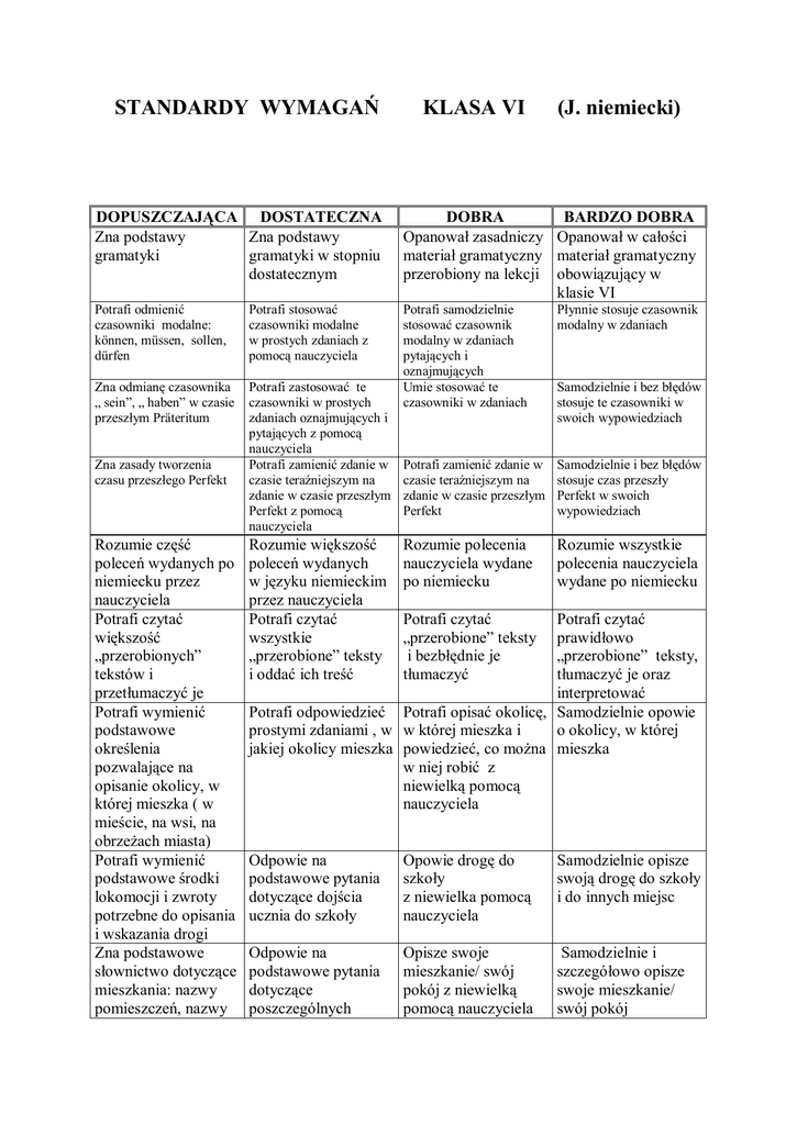 STANDARDY WYMAGAŃ KLASA VI (J. niemiecki)